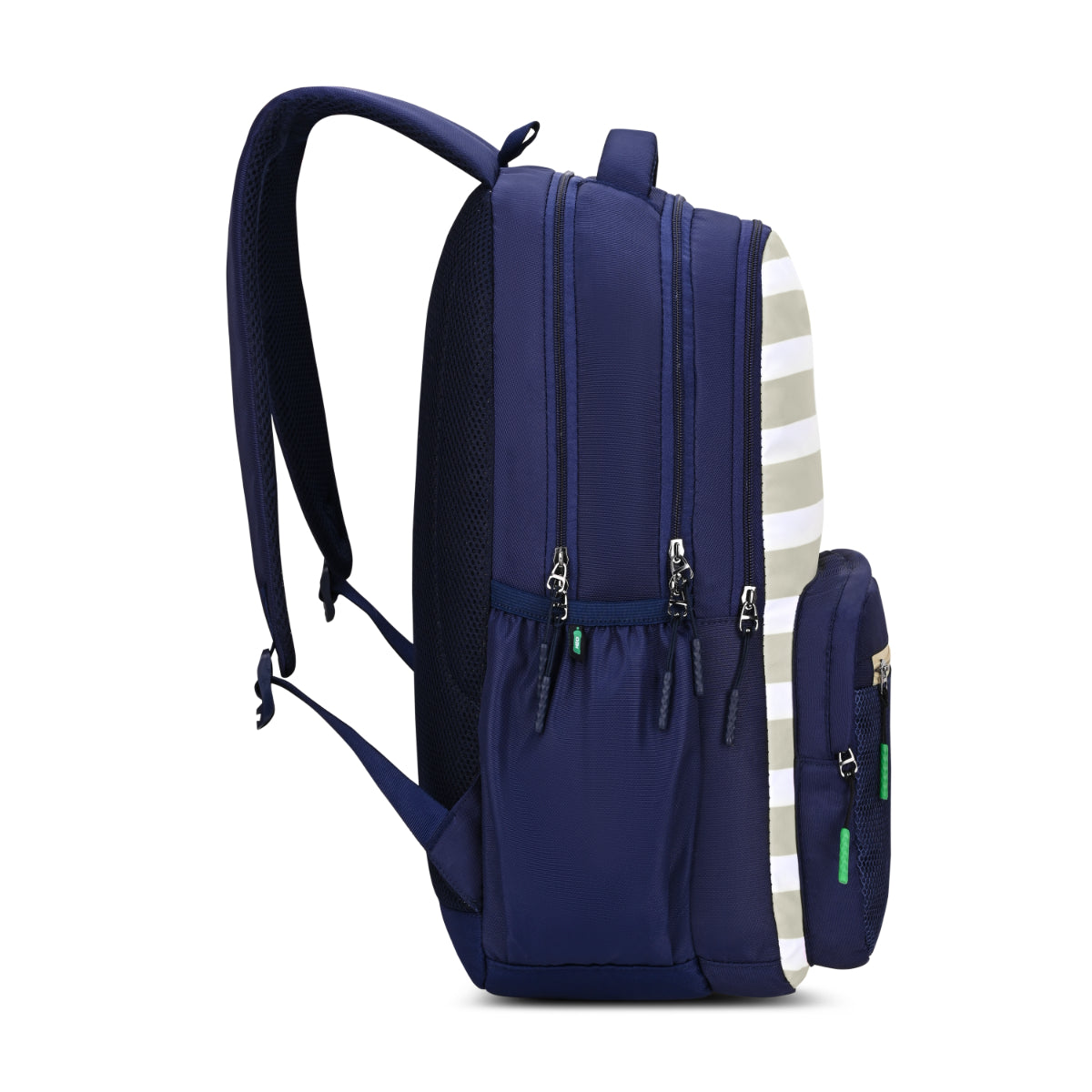 Buckle accents and utility pockets. Adds functionality. Stylish elements. Practical design. Student-friendly.