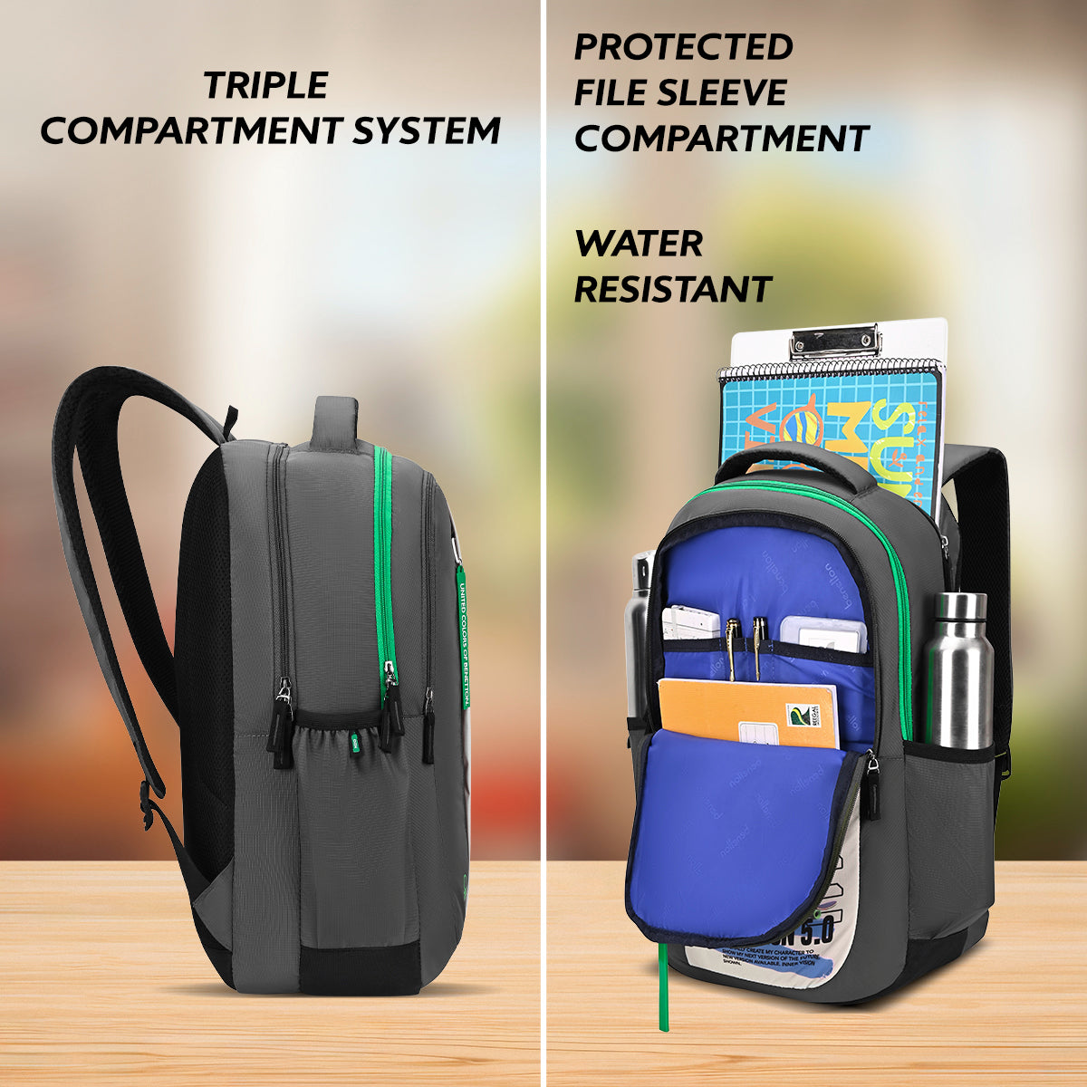 Spacious interior supports heavy books. Organized layout. Maintains balance. Ideal for higher grades. Academic support.