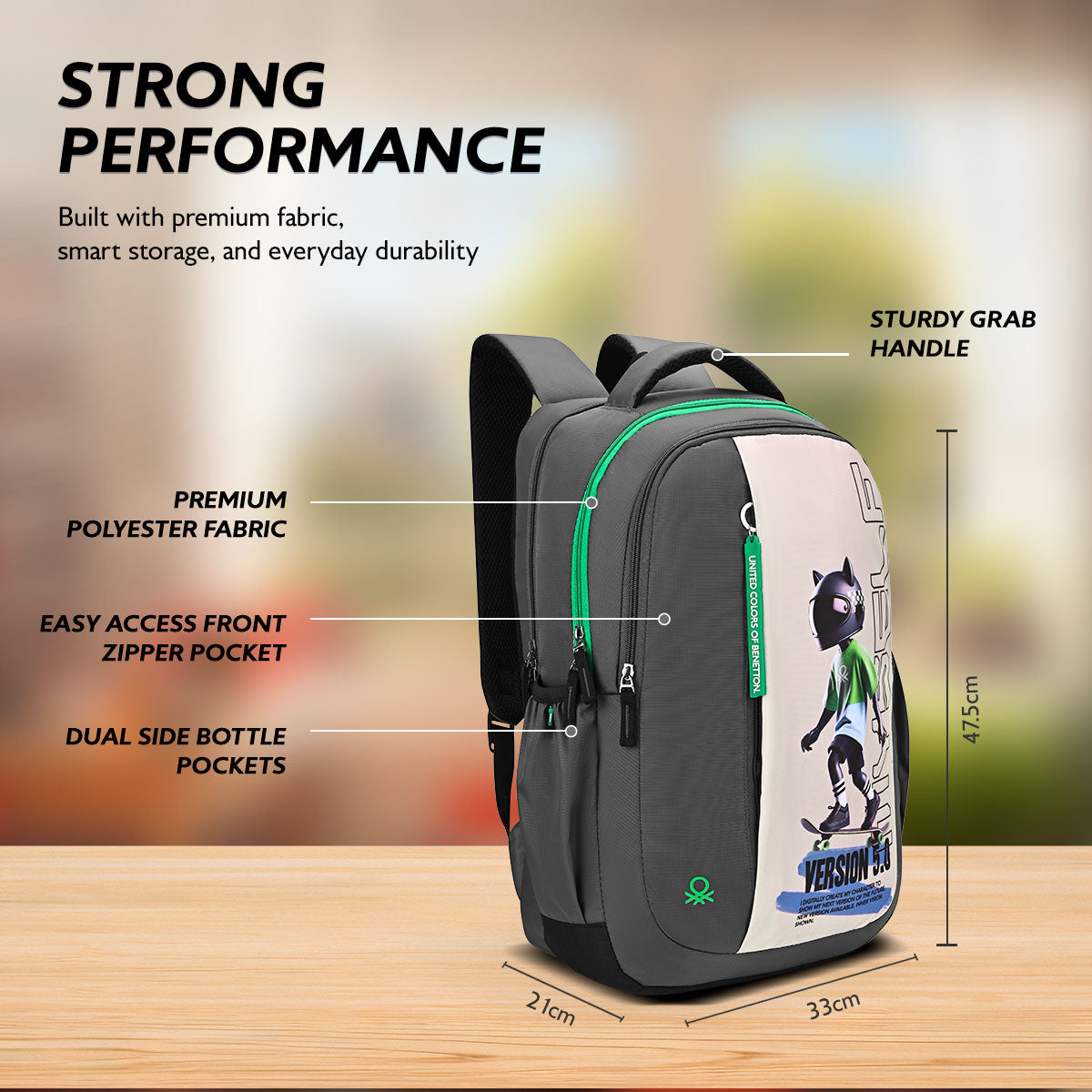 Buckle accents and utility pockets. Adds functionality. Stylish elements. Practical design. Student-friendly.