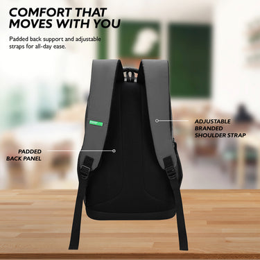 Padded back and straps. Reduces pressure. Supports long hours. Ergonomic design. Comfortable carry.