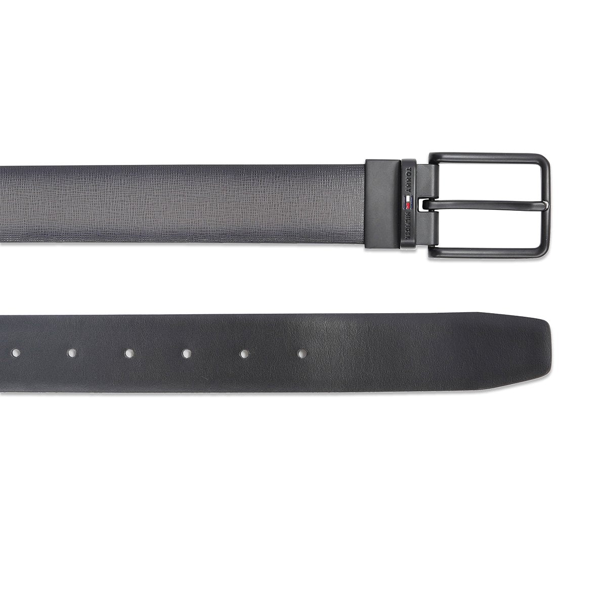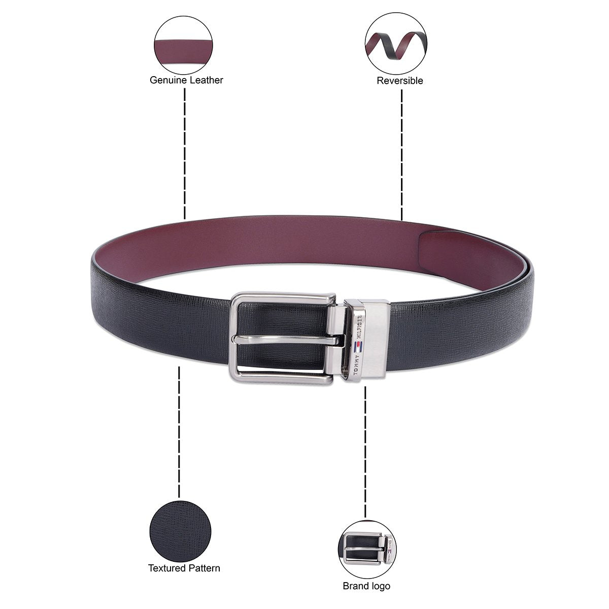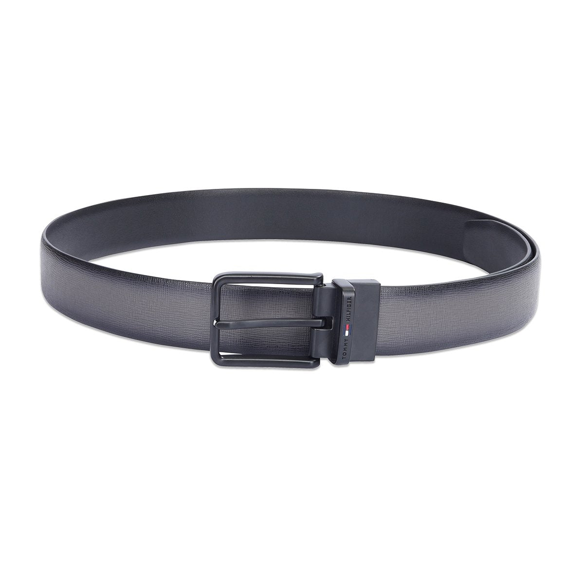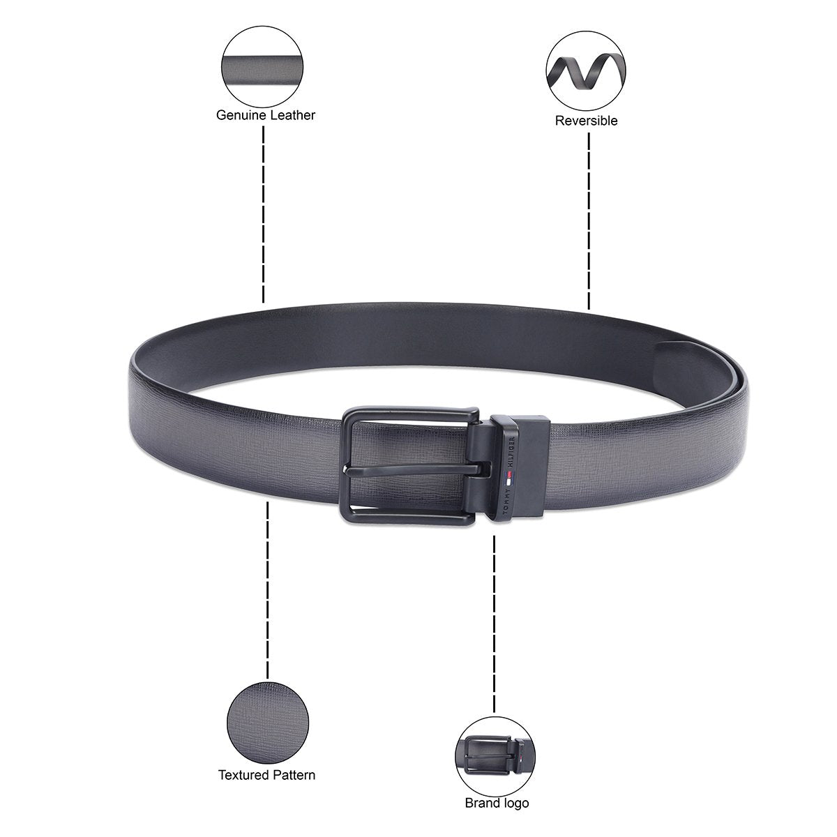 Introducing the Pratt Tommy Hilfiger Men's Belt—a perfect blend of versatility and style. Crafted from genuine leather, this reversible belt is designed for enduring style and durability. Featuring a classic pin closure, it ensures a secure and adjustable fit for all occasions. The textured pattern, complemented by saffiano textured trims, along with a sleek, shiny gun metal finish, adds a touch of elegance and character. Complete your look with the Pratt Belt, the perfect addition to your wardrobe.