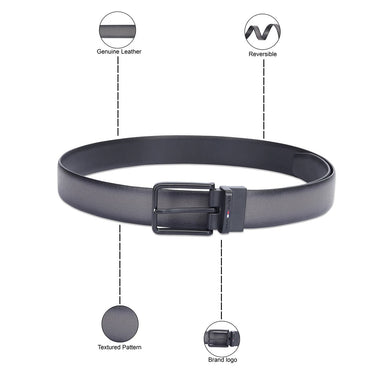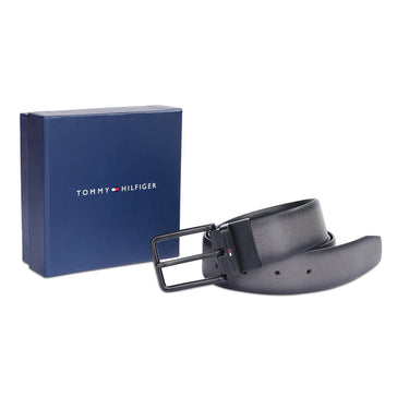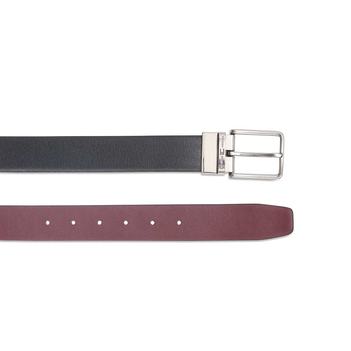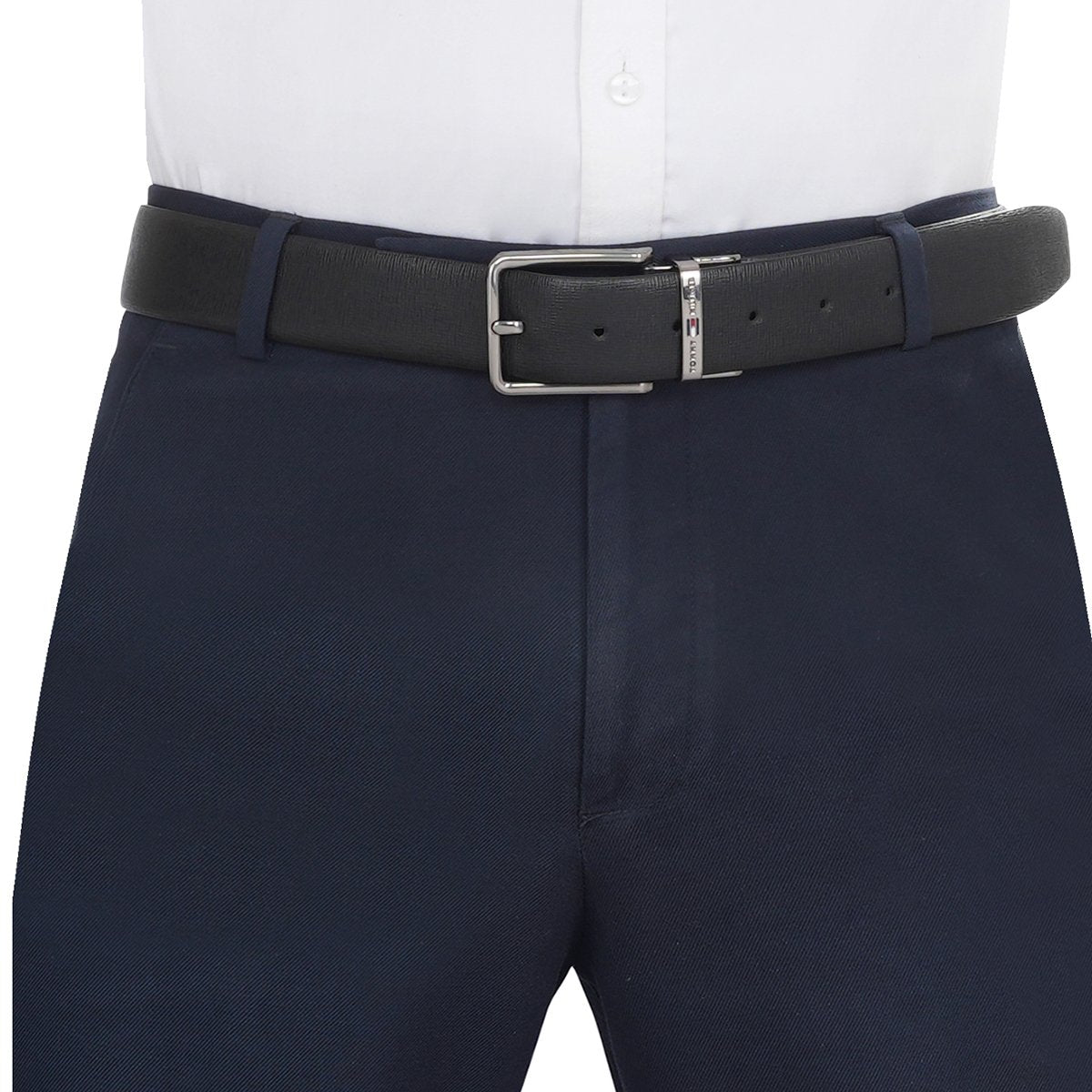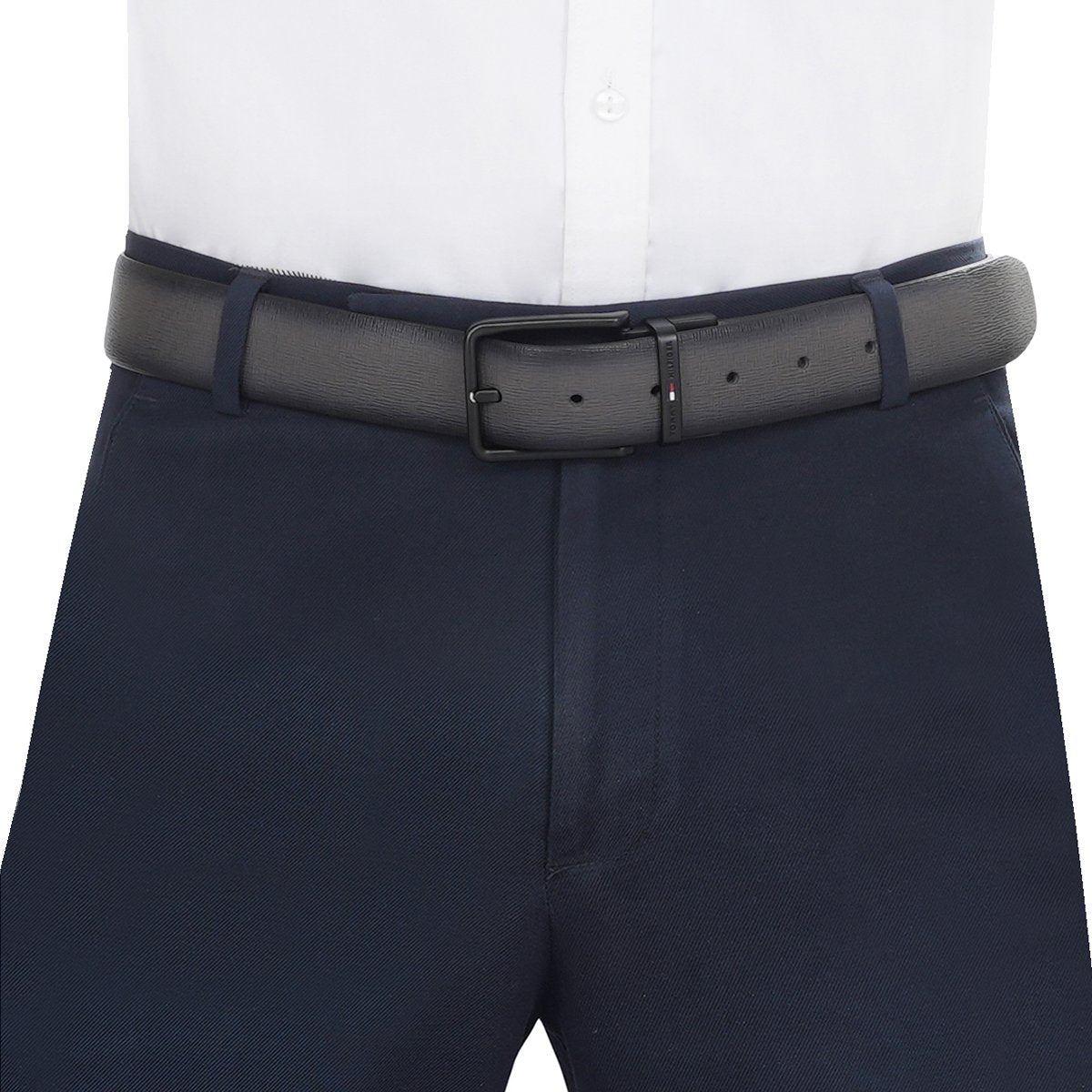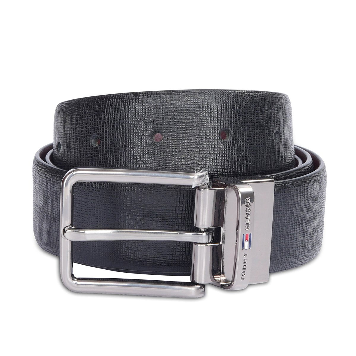 Introducing the Pratt Tommy Hilfiger Men's Belt—a perfect blend of versatility and style. Crafted from genuine leather, this reversible belt is designed for enduring style and durability. Featuring a classic pin closure, it ensures a secure and adjustable fit for all occasions. The textured pattern, complemented by saffiano textured trims, along with a sleek, shiny gun metal finish, adds a touch of elegance and character. Complete your look with the Pratt Belt, the perfect addition to your wardrobe.