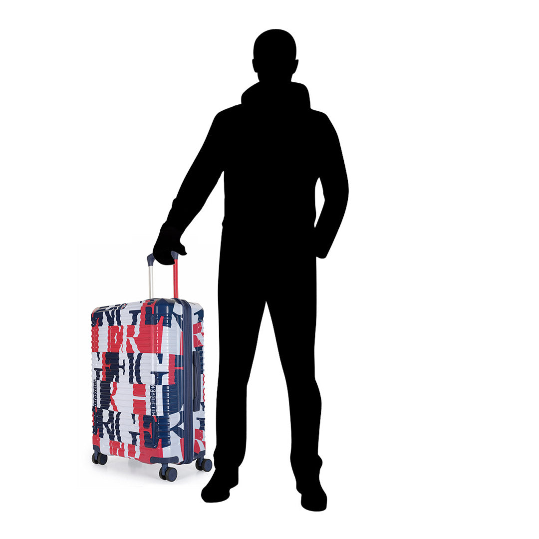 Tommy Hilfiger Spring Colorado luggage is a practical and stylish option for frequent travelers. It features a well-organized interior with a detachable wet pouch and functional packaging strap, as well as 360º wheels and a retractable trolley handle for easy maneuverability. If making a bold statement is your type, then you will enjoy the bold and elegant typography displayed on the luggage case. #Travelwithstyle and ease with this majestic hard luggage bag.