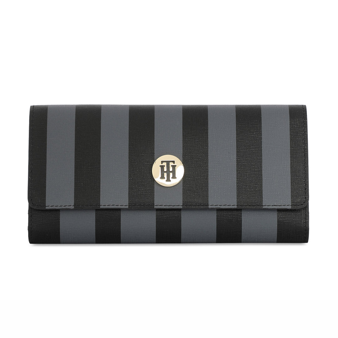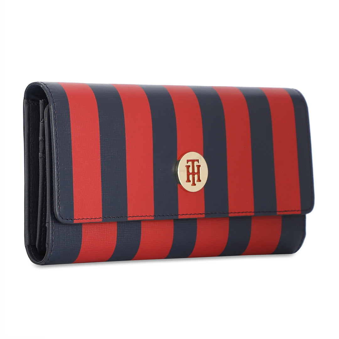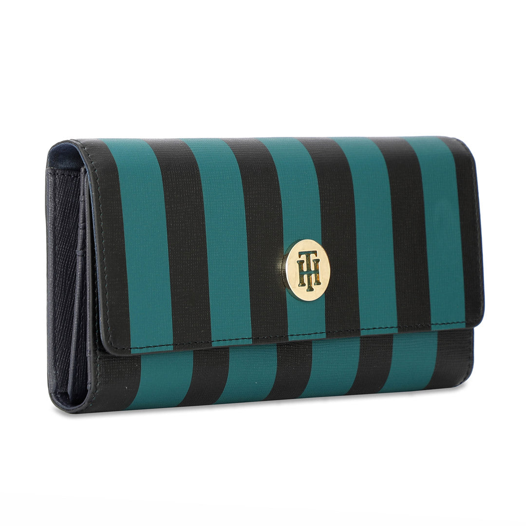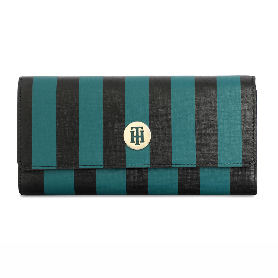 Elevate your casual style with the Tommy Hilfiger Nathalie Women's Leather Flap Wallet . Crafted from premium leather, this fashion-forward wallet features a chic colored striped design that adds a touch of personality to your ensemble. The flap closure adds both security and style, while the cotton lining provides a soft and luxurious interior. With three compartments, including a dedicated coin pocket, and twelve card slots, this wallet offers ample space to keep your essentials organized. The addition of a zippered pocket and an inner pocket further enhances functionality. The Tommy Hilfiger Nathalie wallet is the perfect accessory for the modern woman who values both fashion and practicality.