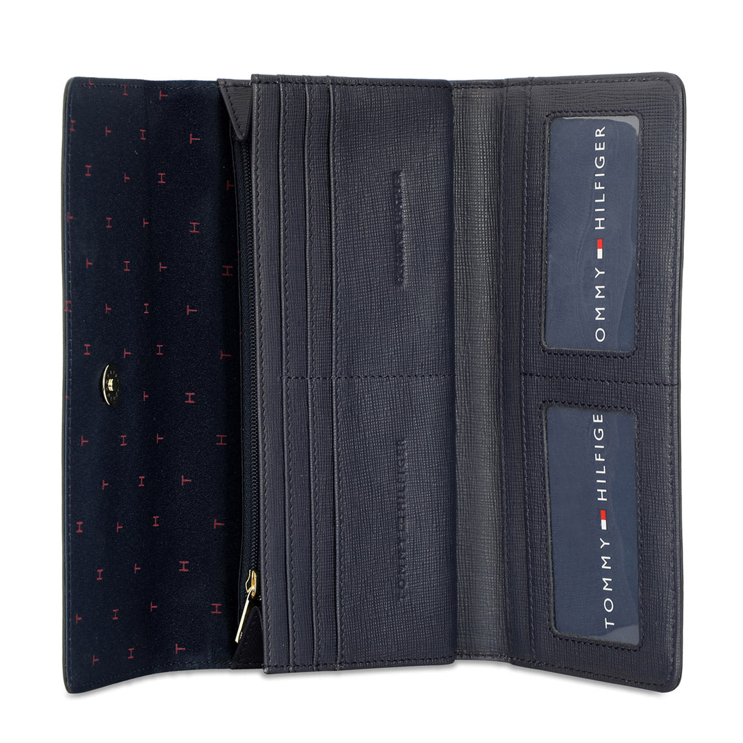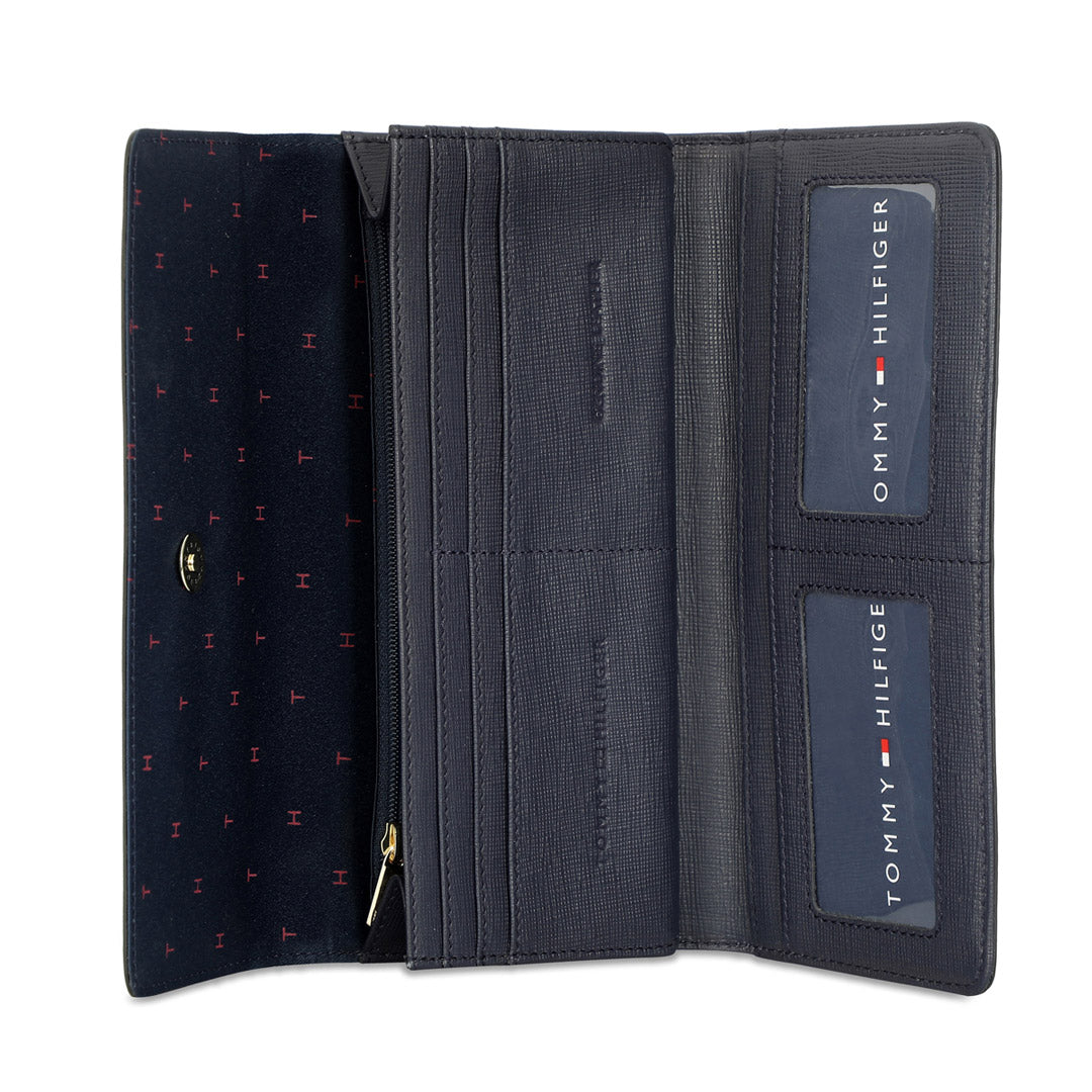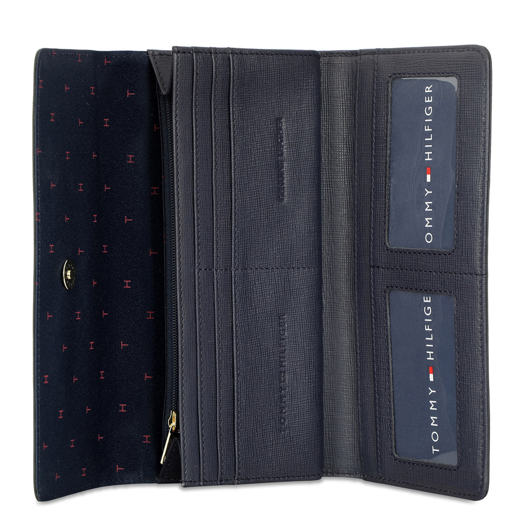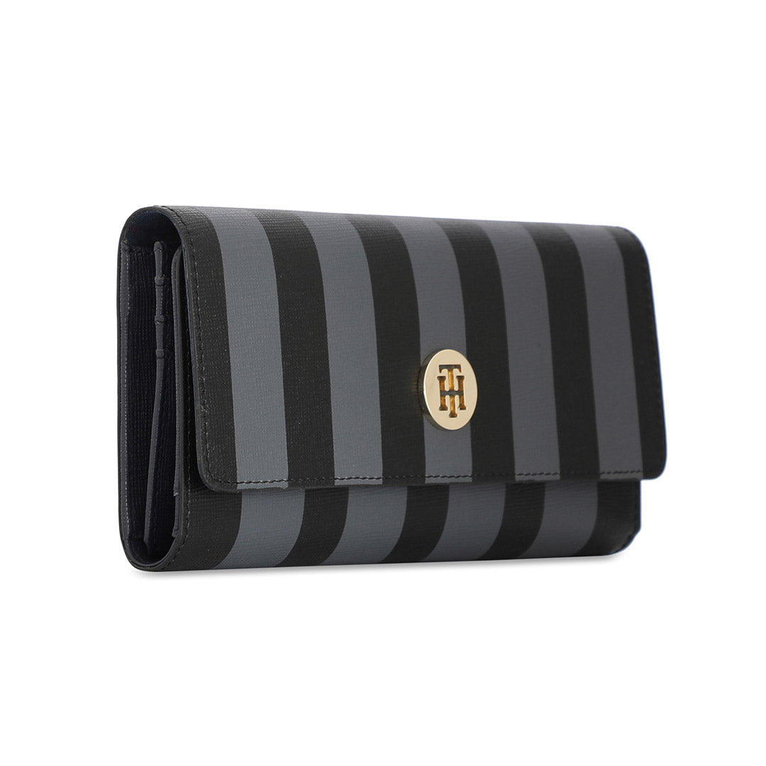 Elevate your casual style with the Tommy Hilfiger Nathalie Women's Leather Flap Wallet . Crafted from premium leather, this fashion-forward wallet features a chic colored striped design that adds a touch of personality to your ensemble. The flap closure adds both security and style, while the cotton lining provides a soft and luxurious interior. With three compartments, including a dedicated coin pocket, and twelve card slots, this wallet offers ample space to keep your essentials organized. The addition of a zippered pocket and an inner pocket further enhances functionality. The Tommy Hilfiger Nathalie wallet is the perfect accessory for the modern woman who values both fashion and practicality.