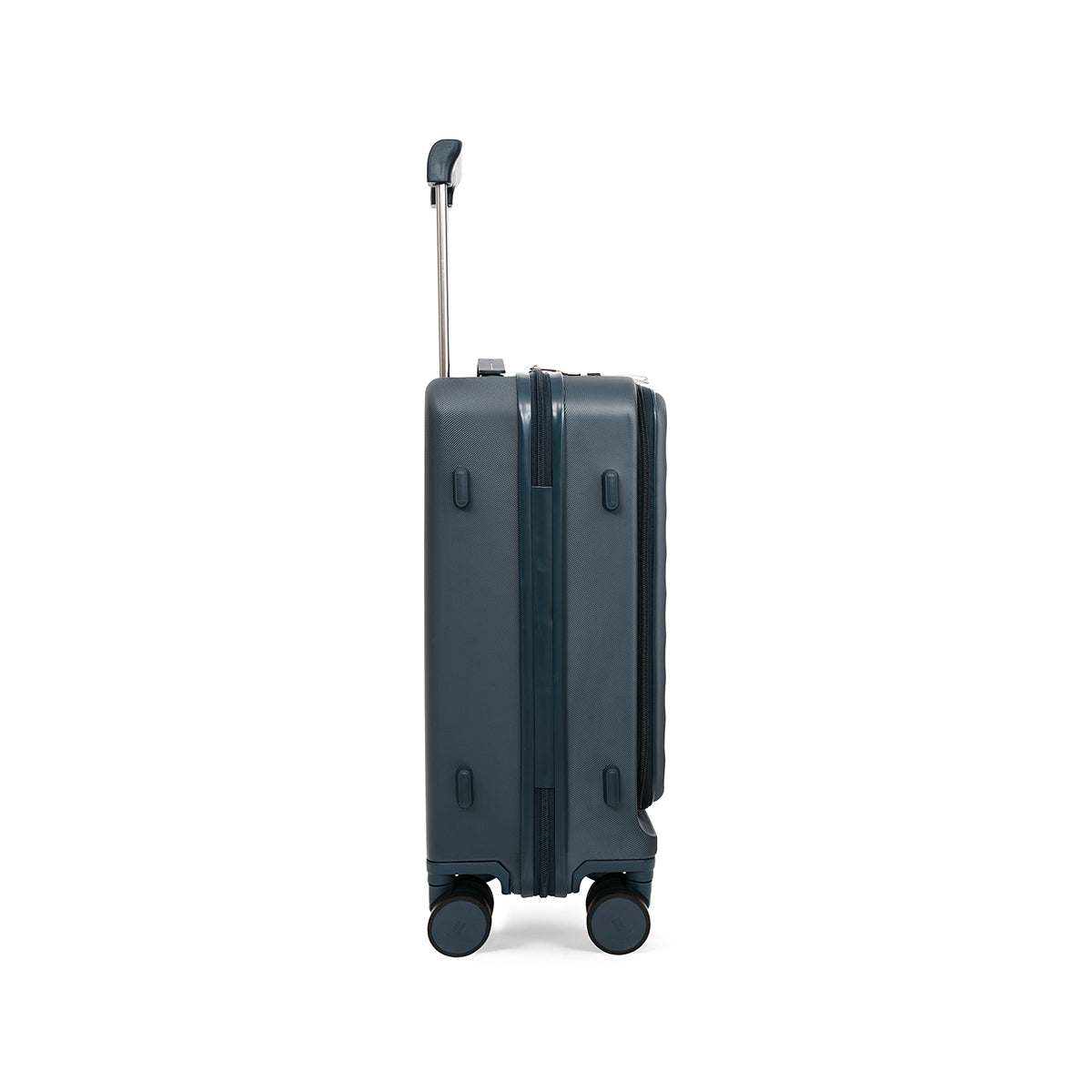 Smart Travel Convenience: Designed for modern travelers, it includes a quick-access zipper pocket in the Trunk shape and a dedicated laptop compartment in Cabin size (compatible with up to 14"" laptops). The 3-step telescopic trolley handle in a shiny gunmetal finish with branded detailing adds a touch of elegance and ergonomic control.