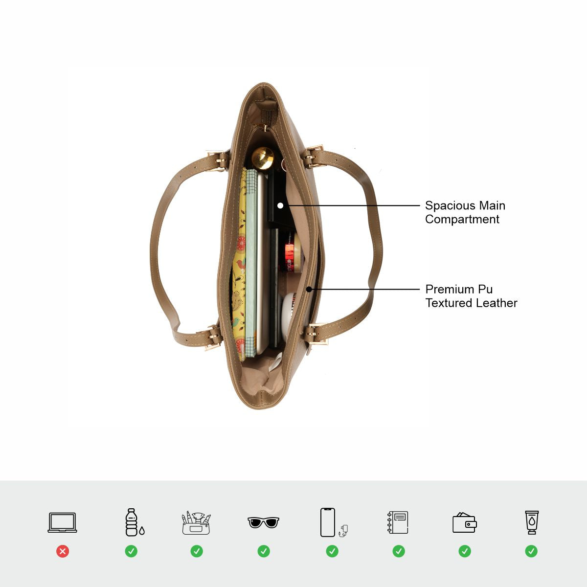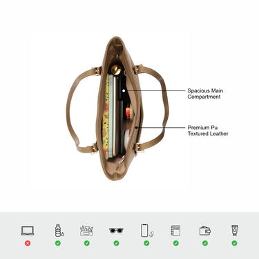 Crafted from premium PU leather with a saffiano texture, this tote offers a sleek, structured silhouette that elevates any look.