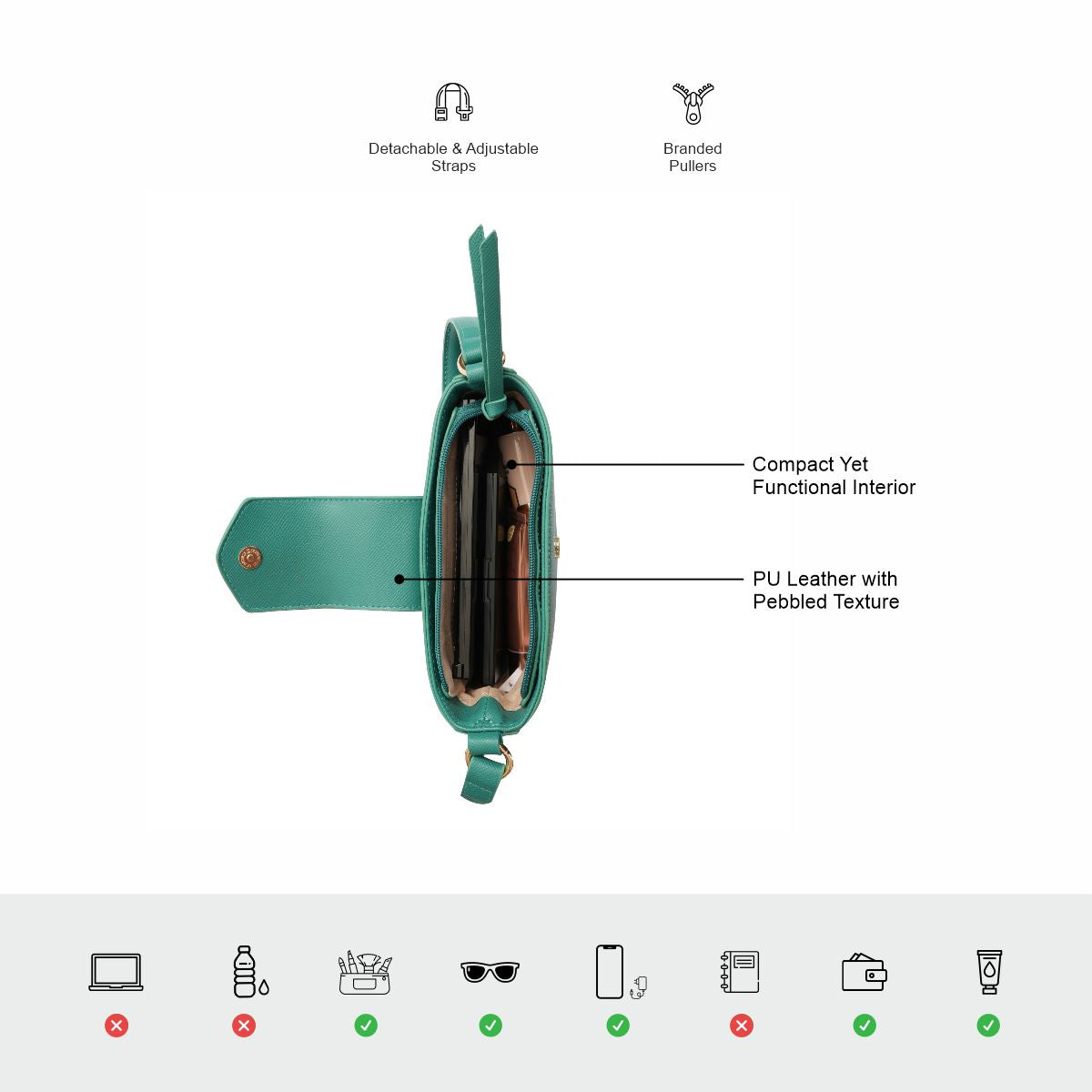 A thoughtfully designed interior offers just the right space for your daily essentials—perfect for errands, outings, or evenings out.