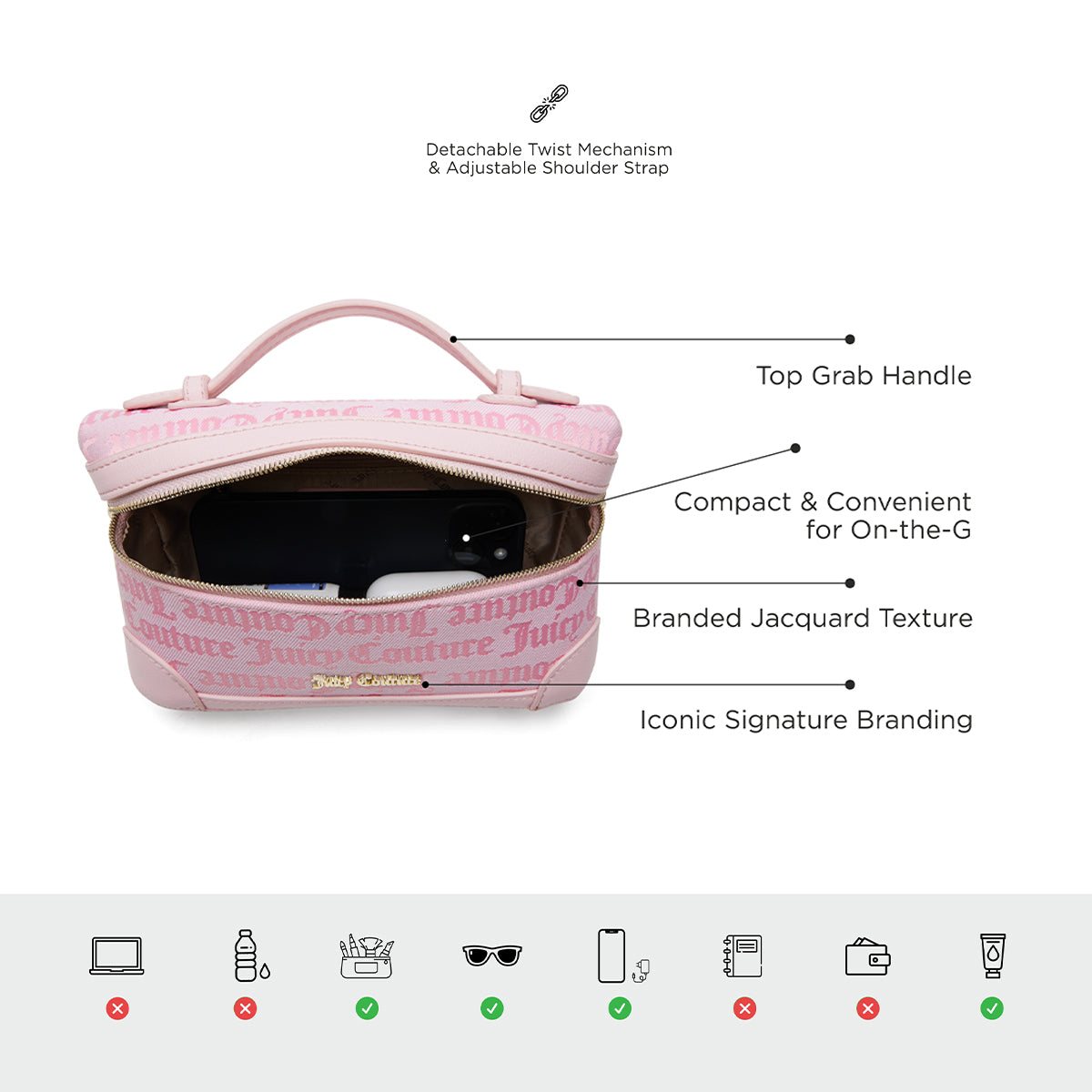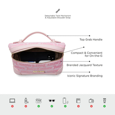 Versatile & Chic: Rock it with the detachable shoulder strap for hands-free ease, or carry it by the handle for a more polished look. Its the perfect compact companion for any Juicy girl on the move.
