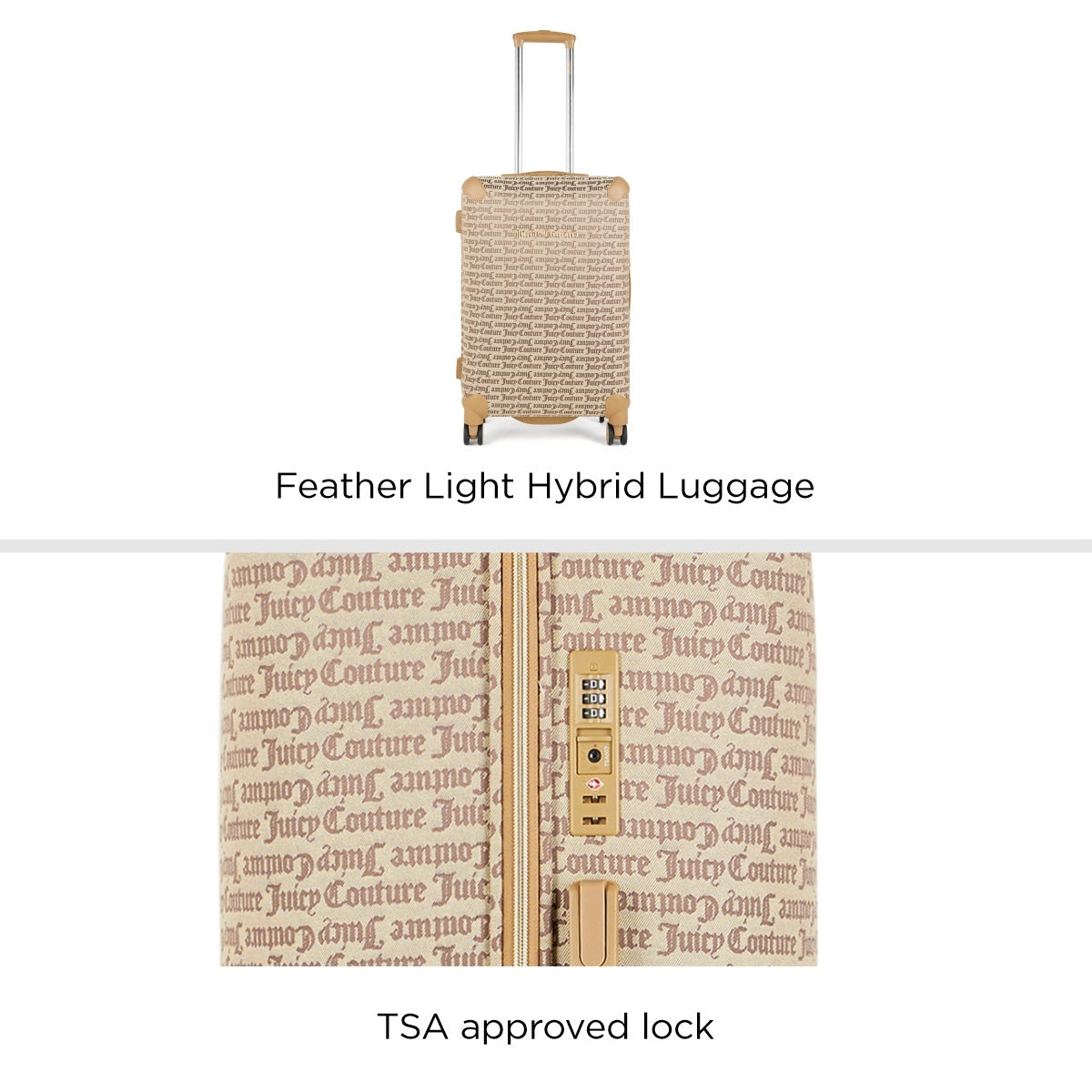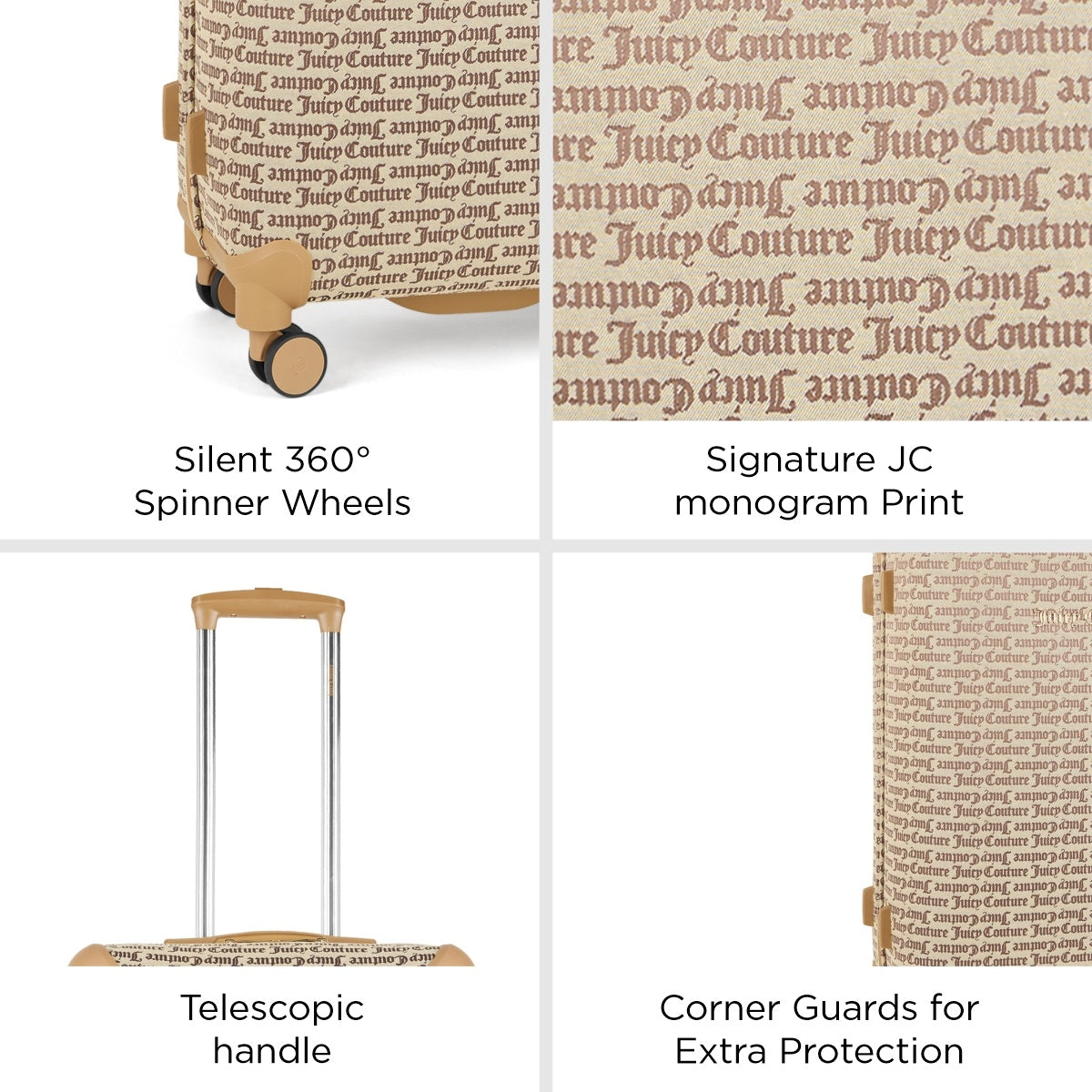 Iconic Exterior: Wrapped in a water-resistant polycarbonate shell with corner guards for extra protection, this beauty flaunts the signature JC jacquard print and branded zipper pullers that scream Juicy from every angle.