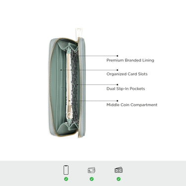 With a premium branded lining, structured card slots, a zippered coin compartment, and two slip-in pockets — it keeps your must-haves organized and always within reach.