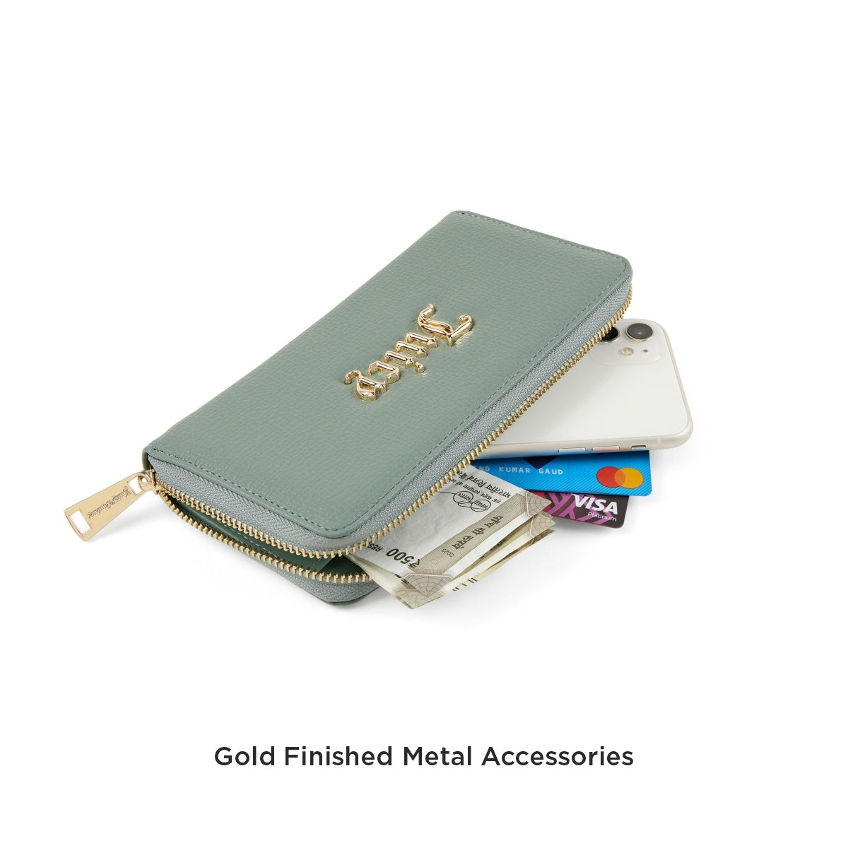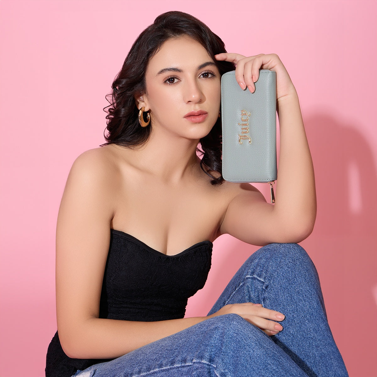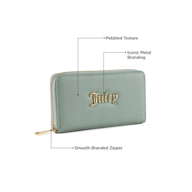 Made with luxe pebbled texture, bold Juicy branding, and gold-finished metal accents — this wallet is all about everyday glam with effortless style.