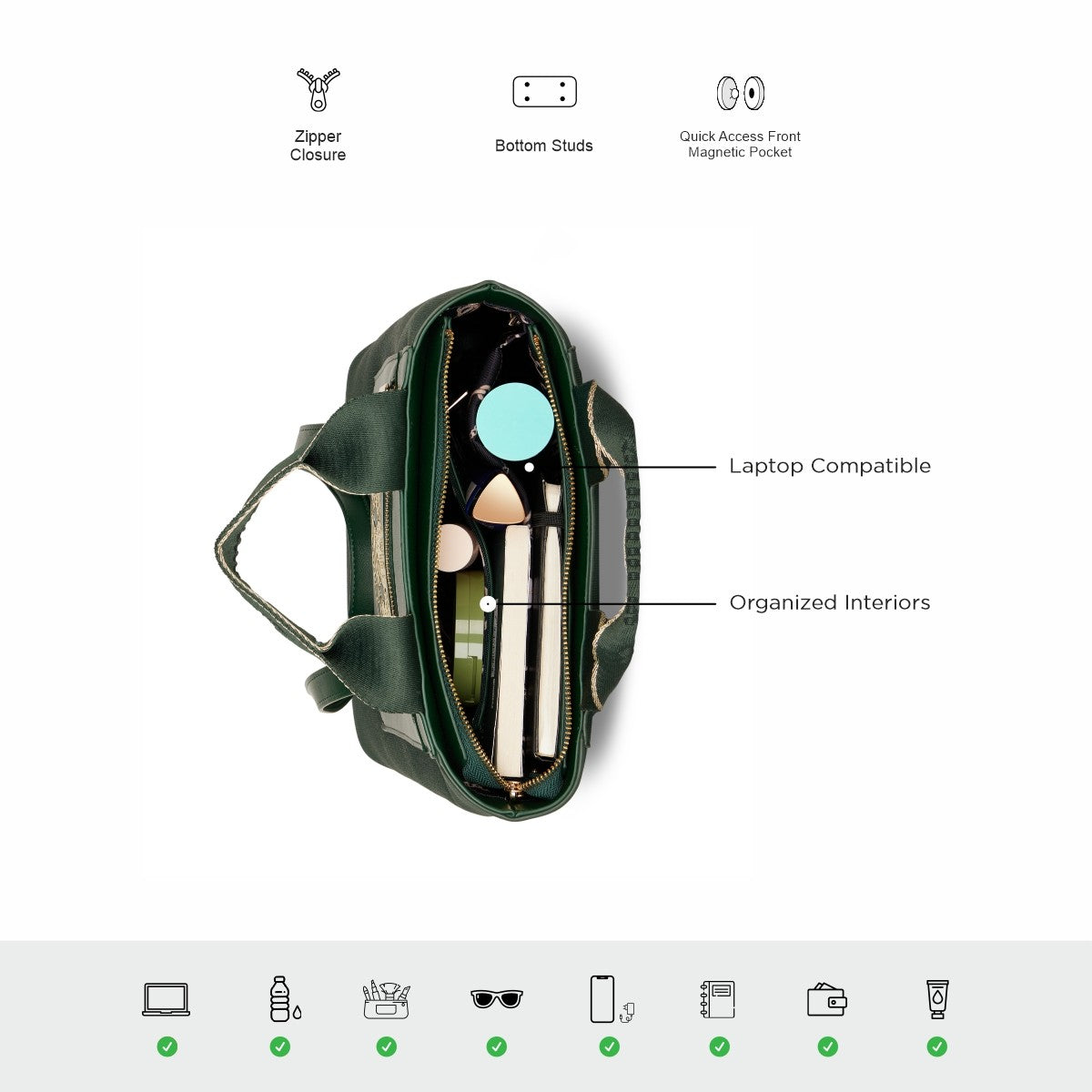 Quick access front pocket, back slip in slot, and organized interiors (yes, there's an accessory holder!) keep your essentials sorted and your style sharp.