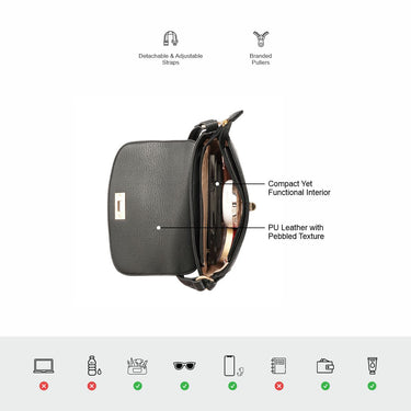 Comes with detachable and adjustable straps, allowing seamless transition between shoulder and crossbody wear.