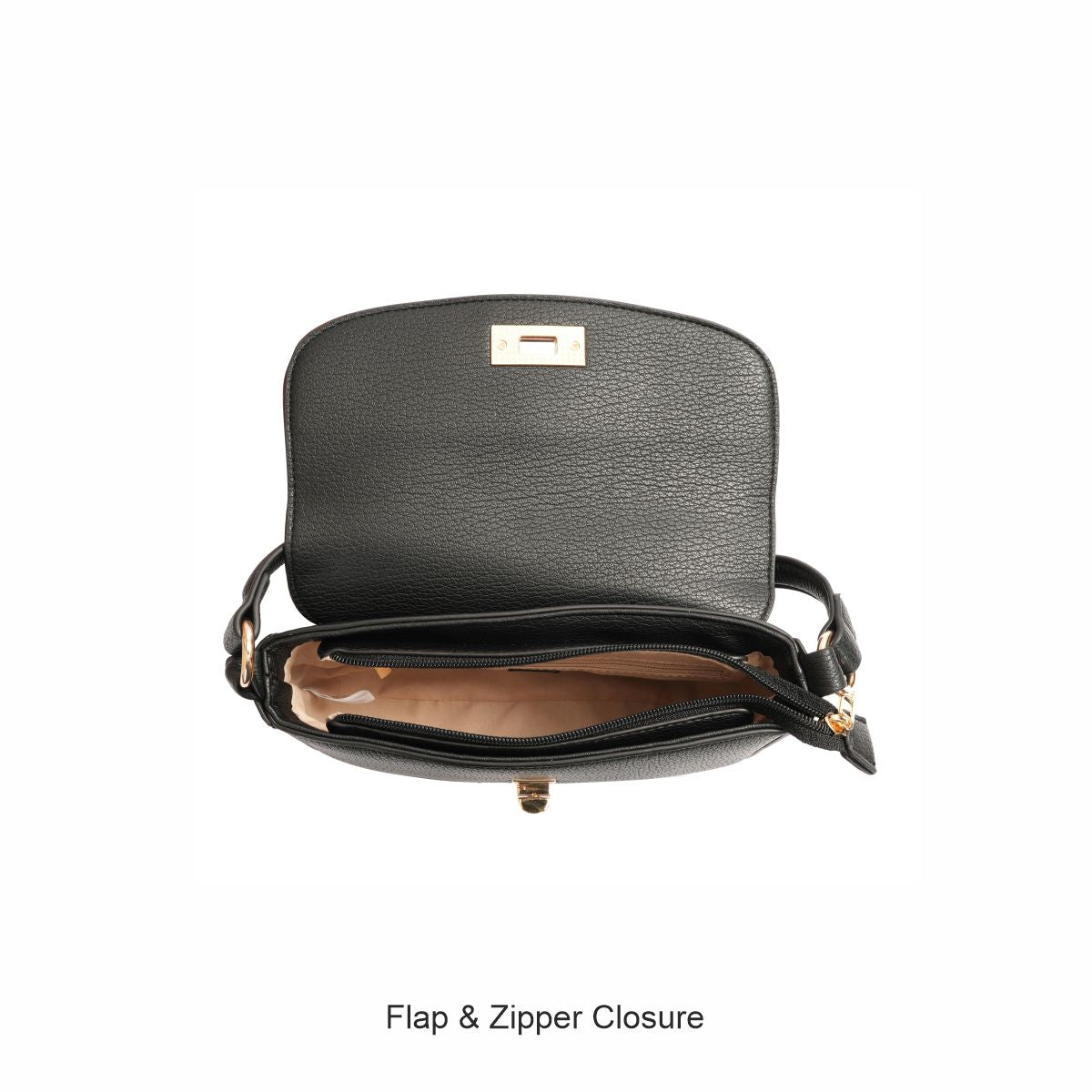 PU leather with a rich pebbled texture, paired with flap and zipper closure for added protection and elevated style.