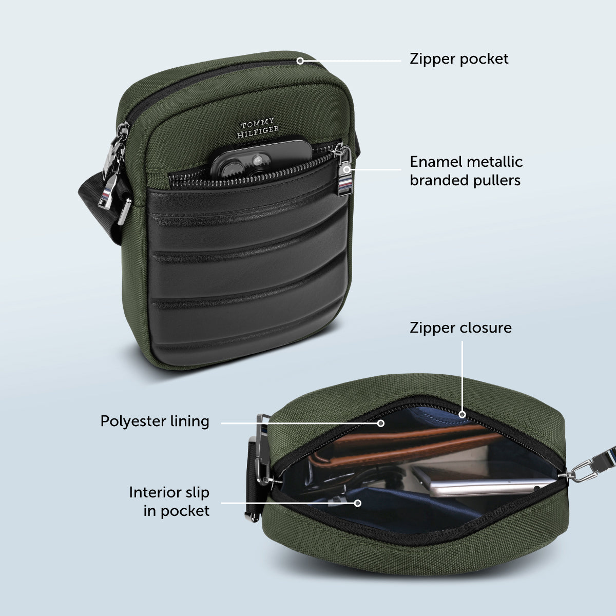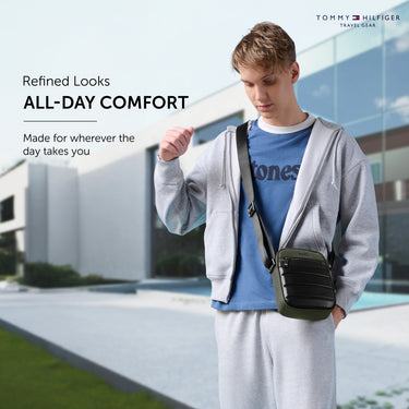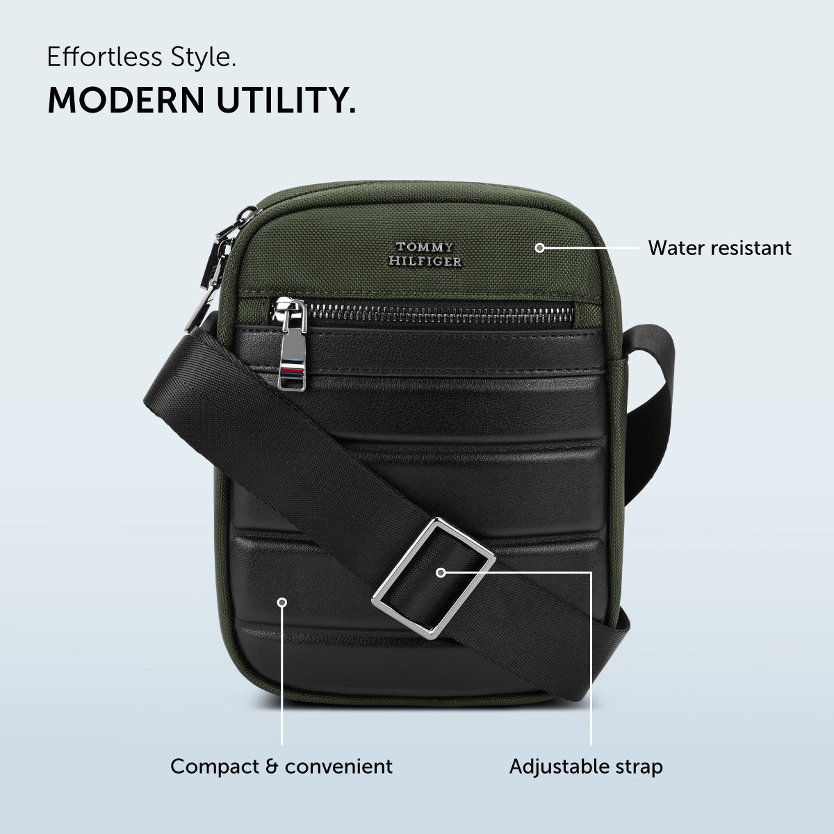 The Tommy Hilfiger Coniston Cross-body is the ultimate in style and functionality. This sleek and classy business case is the ideal travel companion, combining functionality and elegance in one package. This cross-body is made of premium leather in a timeless black colour and features a stripe printed design, which adds a touch of modernity to its classic charm. The flexible and detachable webbing strap of this bag allows you to carry it comfortably as a cross-body or easily convert it into a portable case. The interior is lined with soft cotton to keep your belongings protected. The Tommy Hilfiger Coniston Cross-body is the ideal combination of fashion and utility for a day at the office or a casual outing.