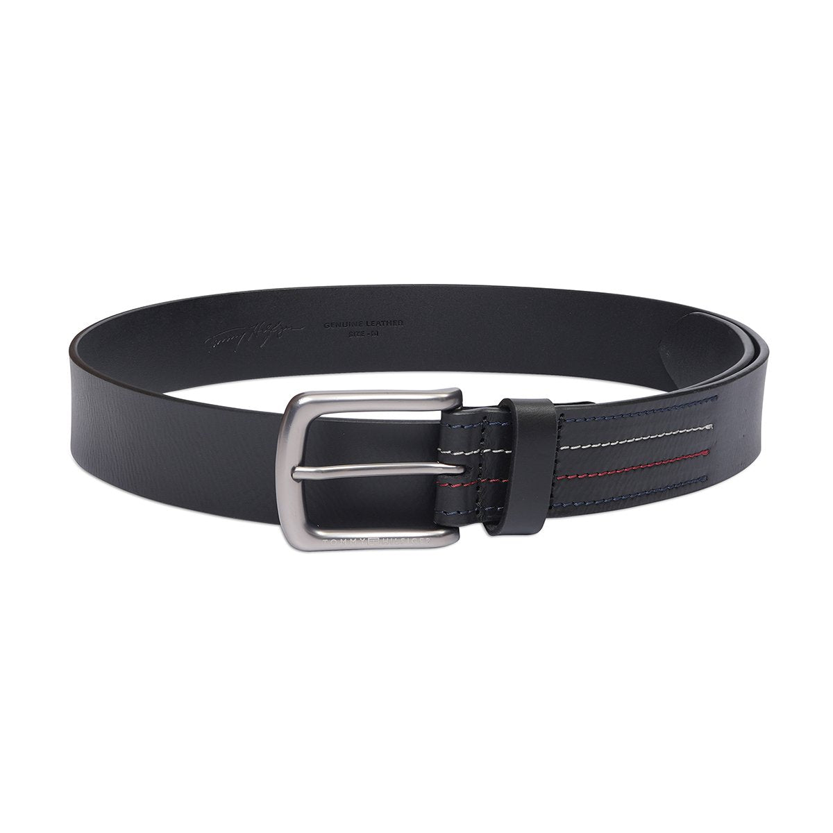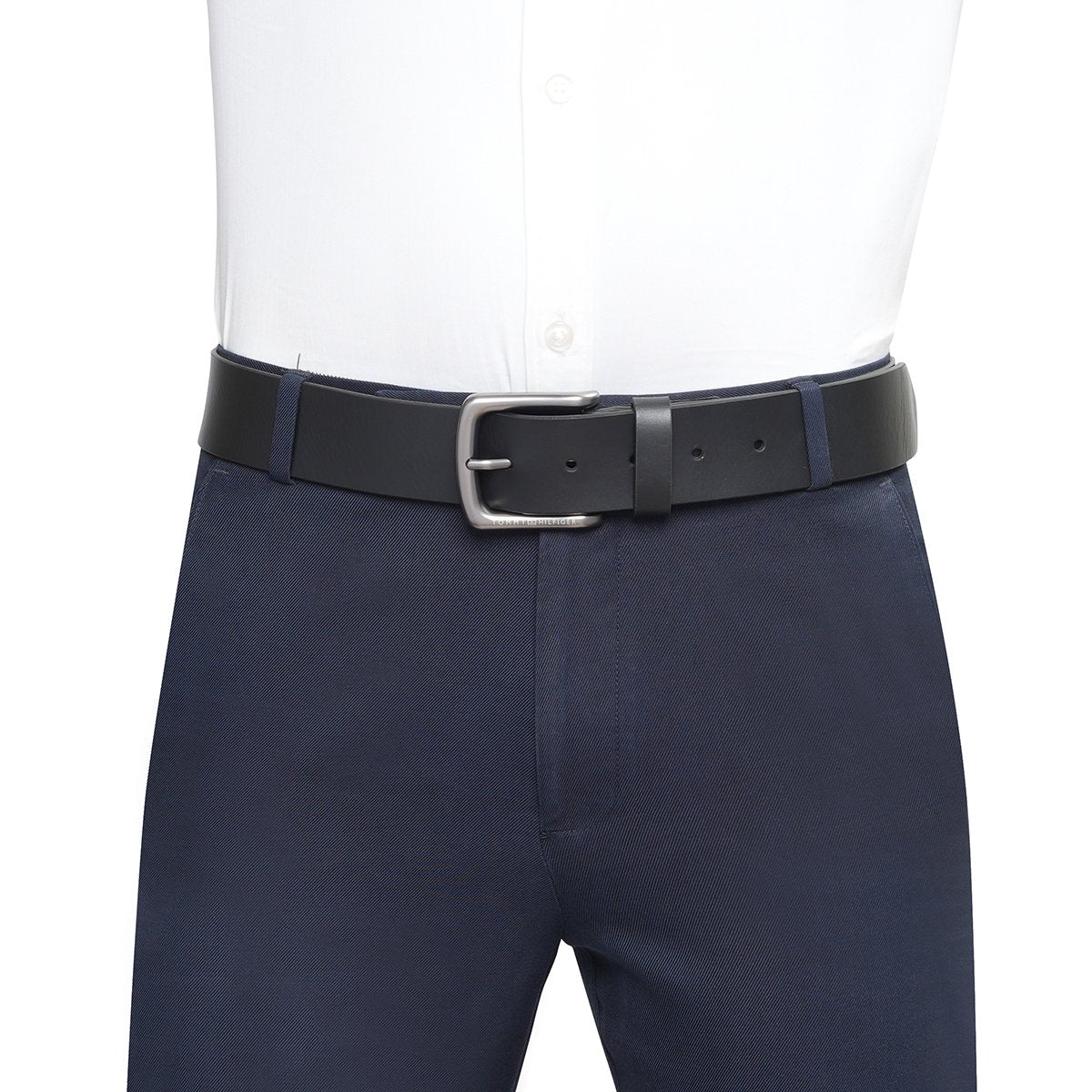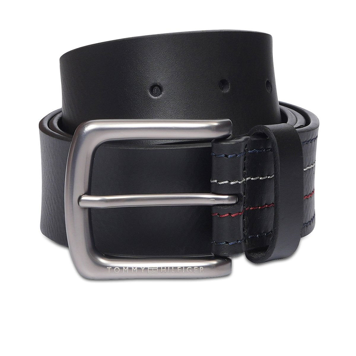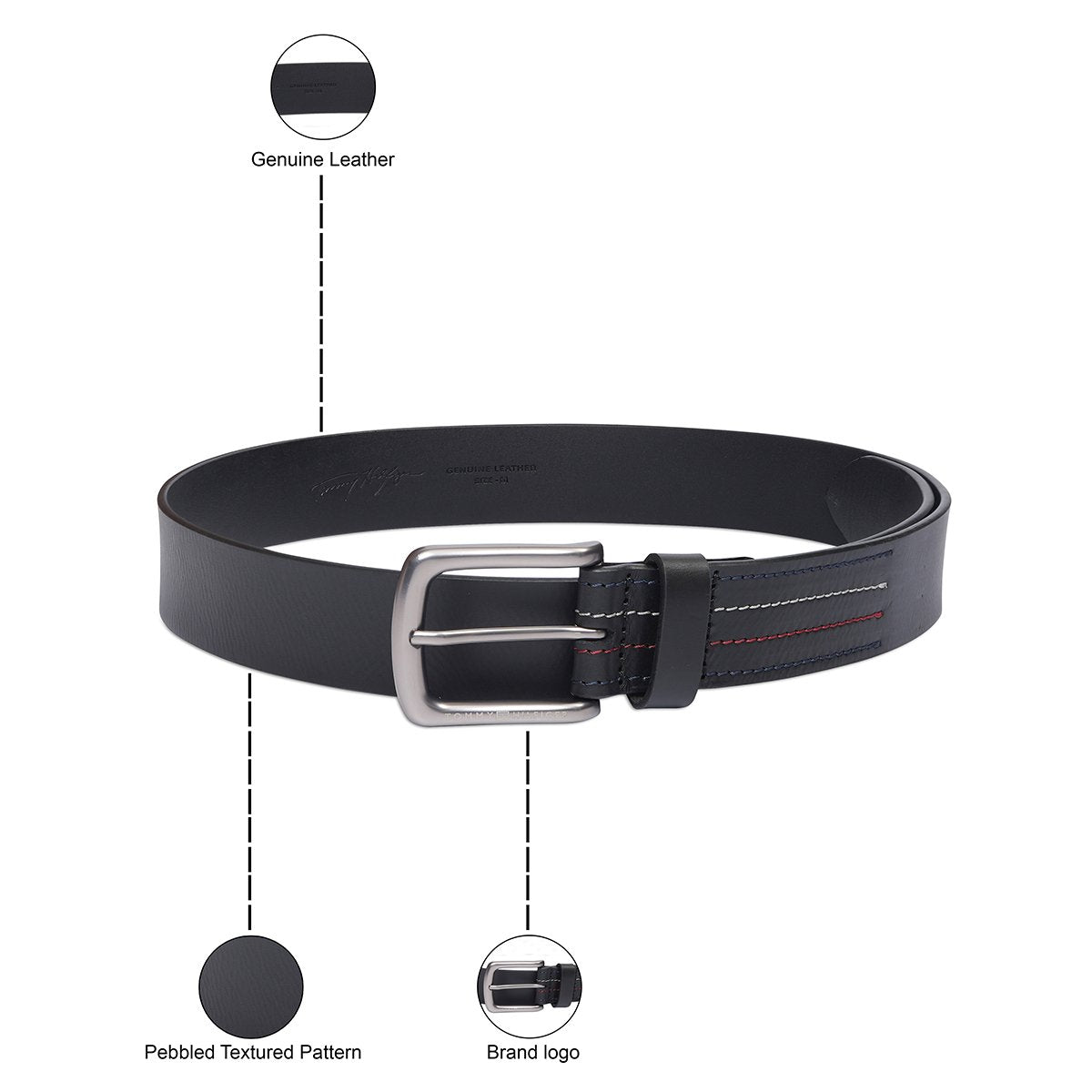 Pebbled Texture: The Tommy Hilfiger Rocheport Men's Non Reversible Belt in black offers casual sophistication. Crafted from genuine leather, its pebbled texture with a matte gunmetal finish adds a unique touch.