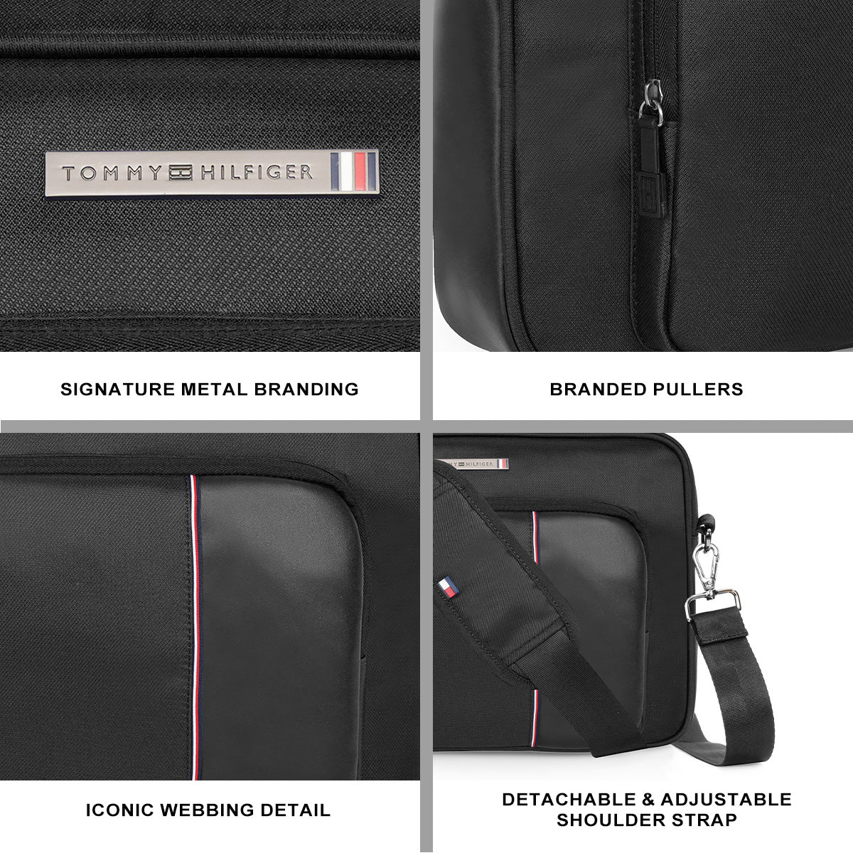 Featuring metal branding accents, branded pullers, and the iconic Hilfiger webbing detail, the bag carries a distinctive identity that blends sophistication with sporty elegance.