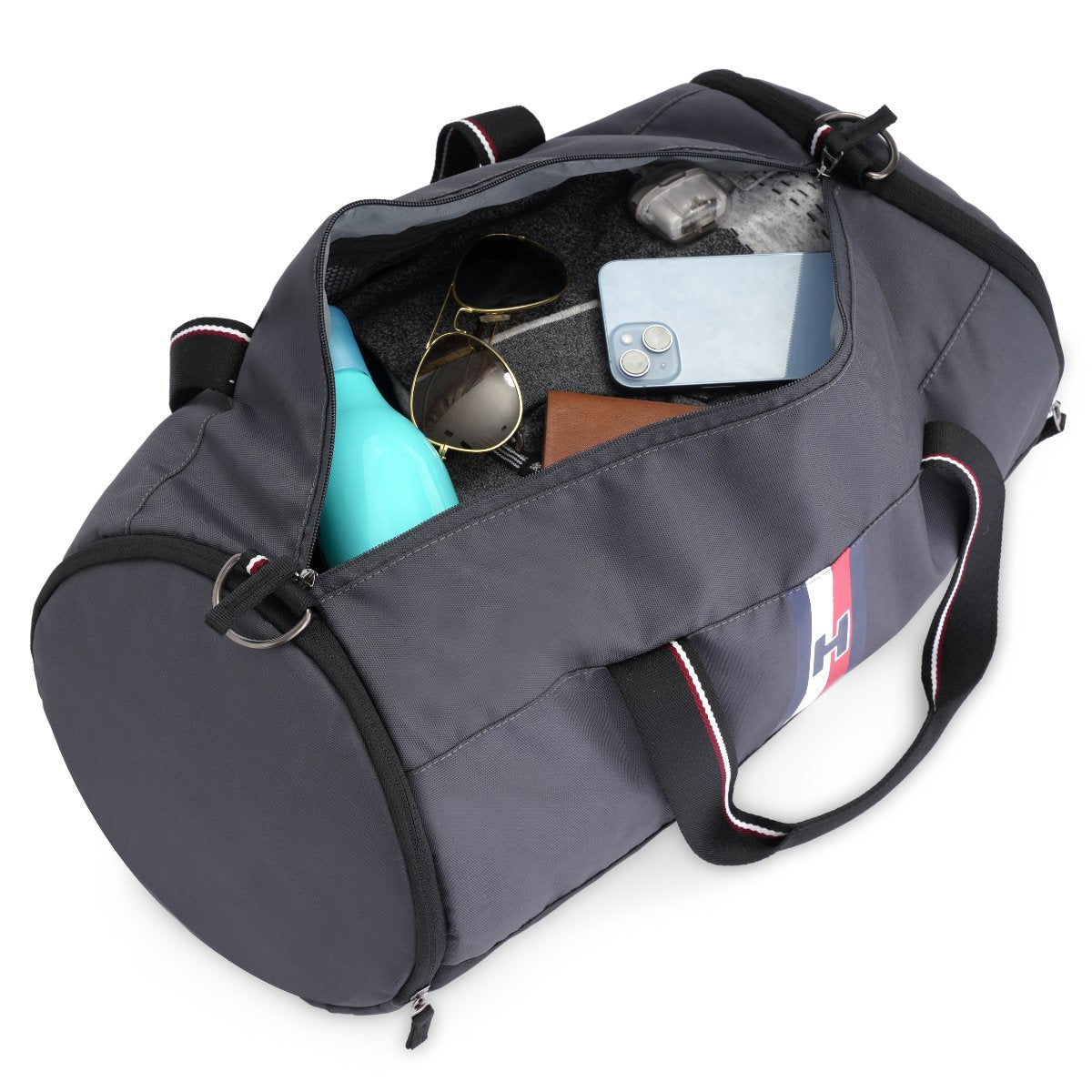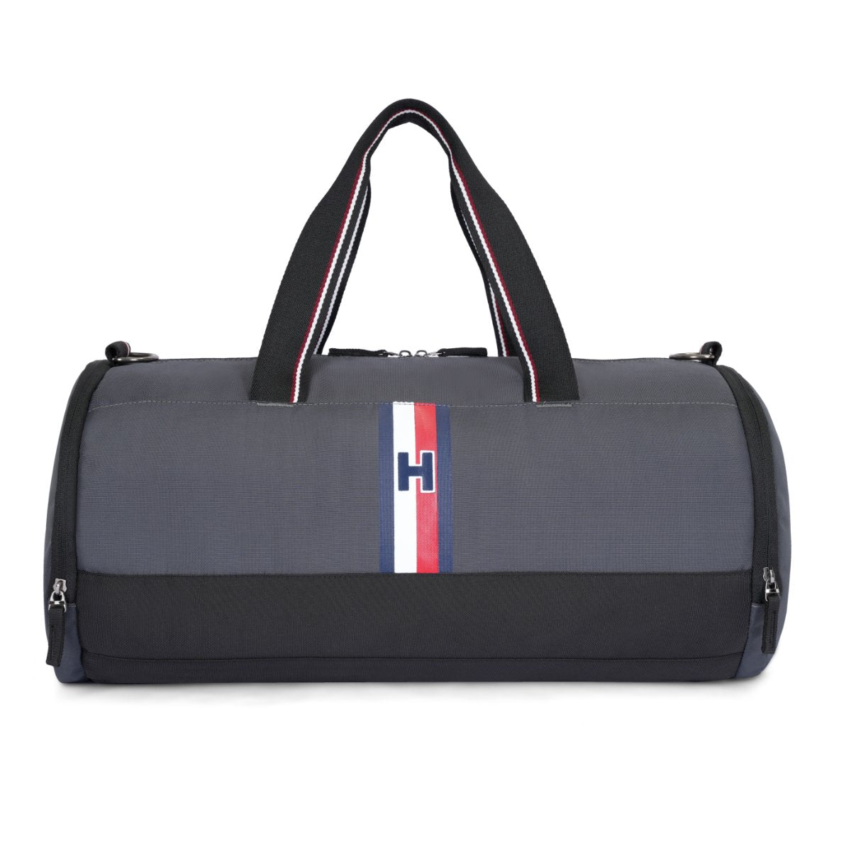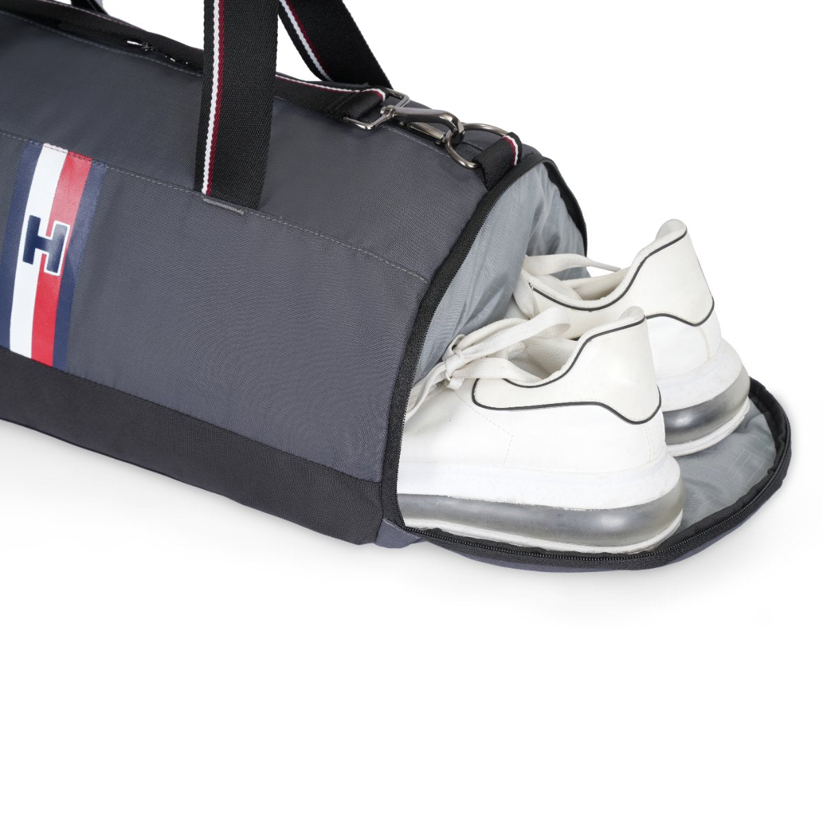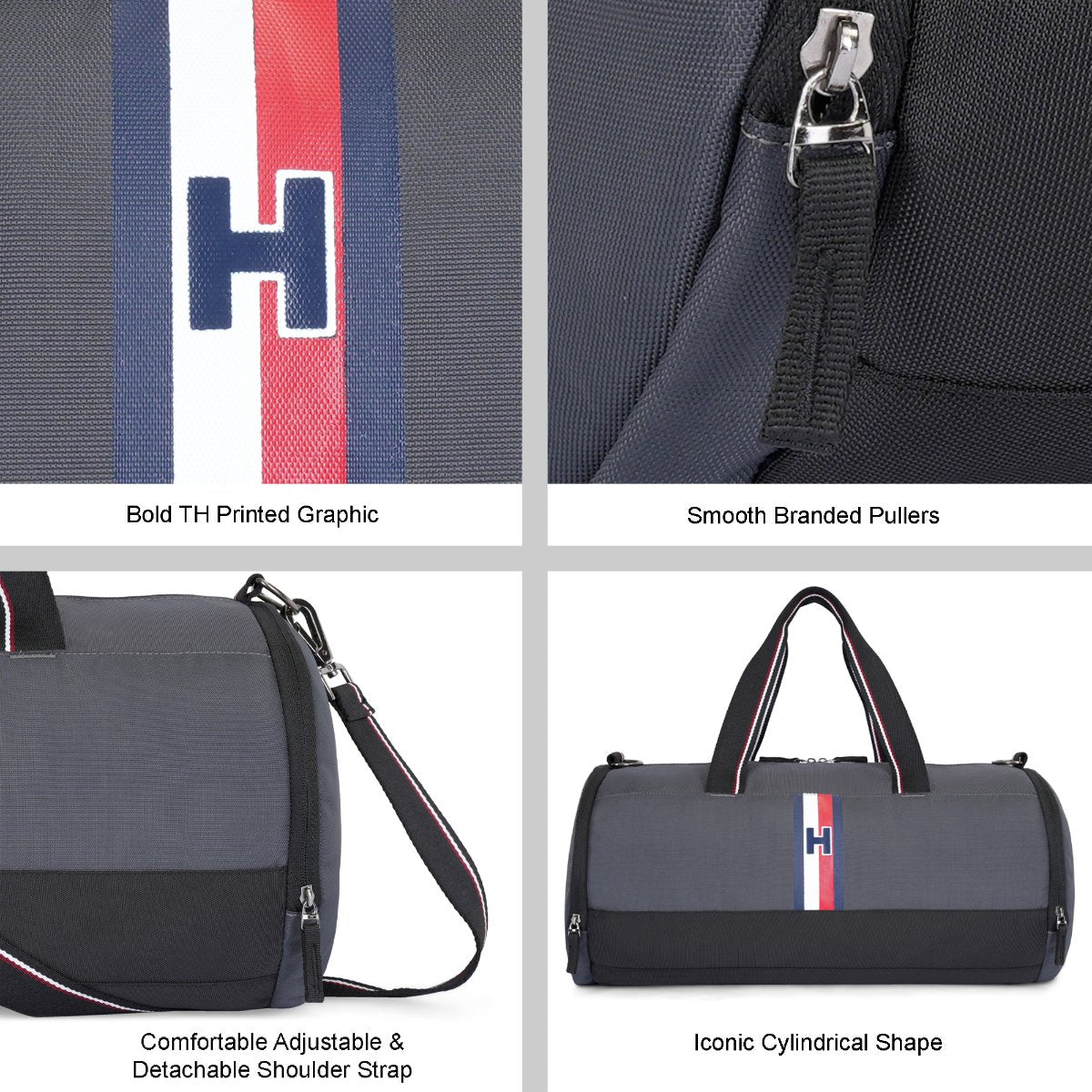 Embody bold style with iconic cylindrical shape and eye-catching TH printed graphic – perfect for individuals seeking a fashionable, statement-making gym bag.
