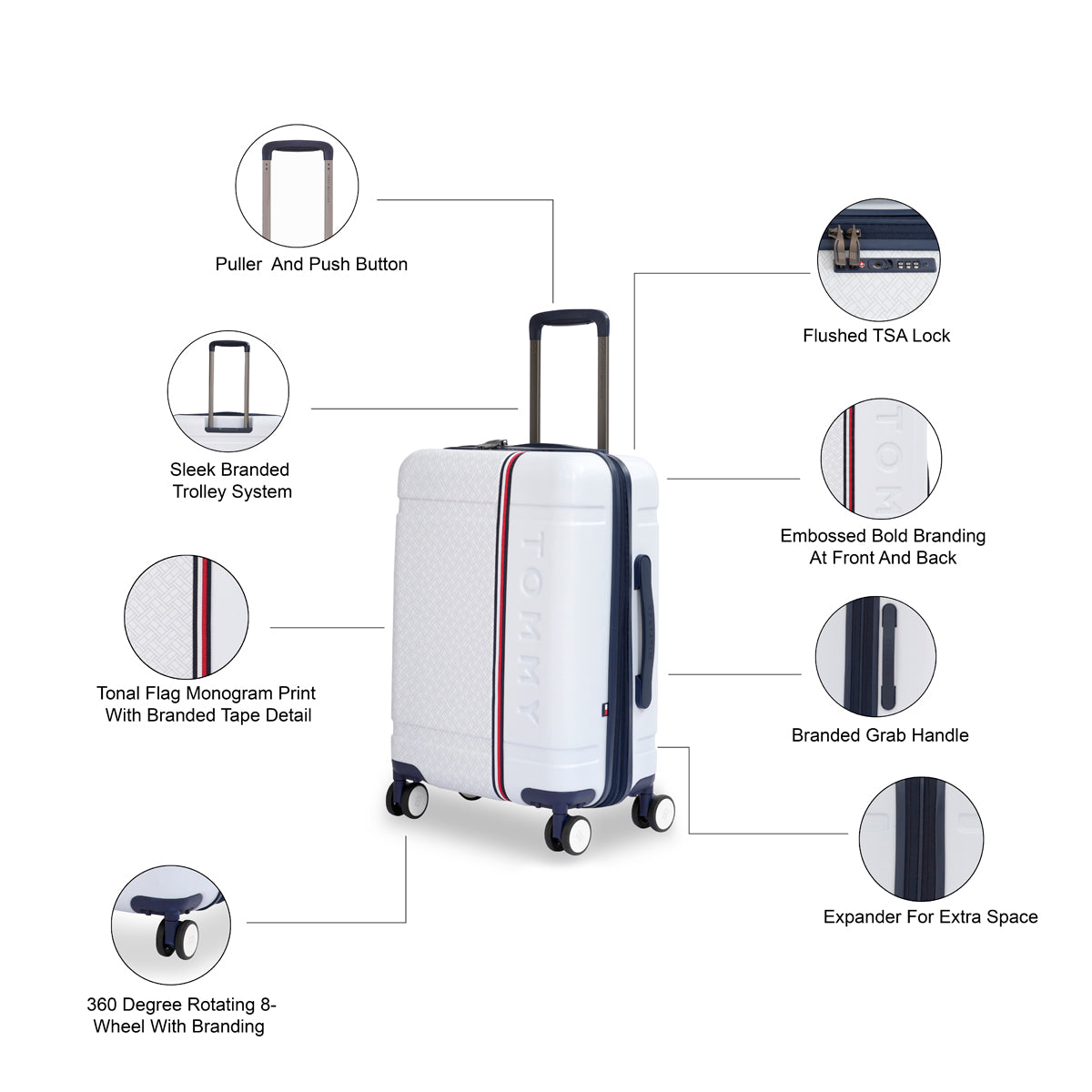 Introducing the Tommy Hilfiger Millennia Unisex Travel Gear Cabin Size Luggage – the ultimate travel companion for the modern adventurer. Crafted from solid ABS + PC film fabric with a practical design, this luggage is not only durable but also stylish, making it perfect for casual wear. The zipper closure ensures your belongings stay secure, while the top handle makes it easy to carry.