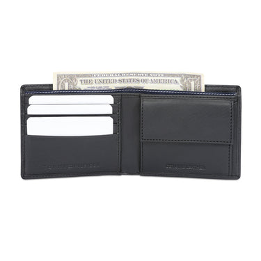 The Tommy Hilfiger Chapin Wallet is a global coin wallet designed for the modern man. Crafted from genuine leather and a luxurious cotton lining, this wallet features a convenient side closure for added security. The cotton lining and solid pattern contribute to its timeless elegance. With two compartments, two pockets, and four card slots, it offers optimal organization in a sleek design. The inclusion of RFID protection ensures the safety of your personal information. Elevate your daily essentials with the Chapin Wallet, a classic choice for any outfit.