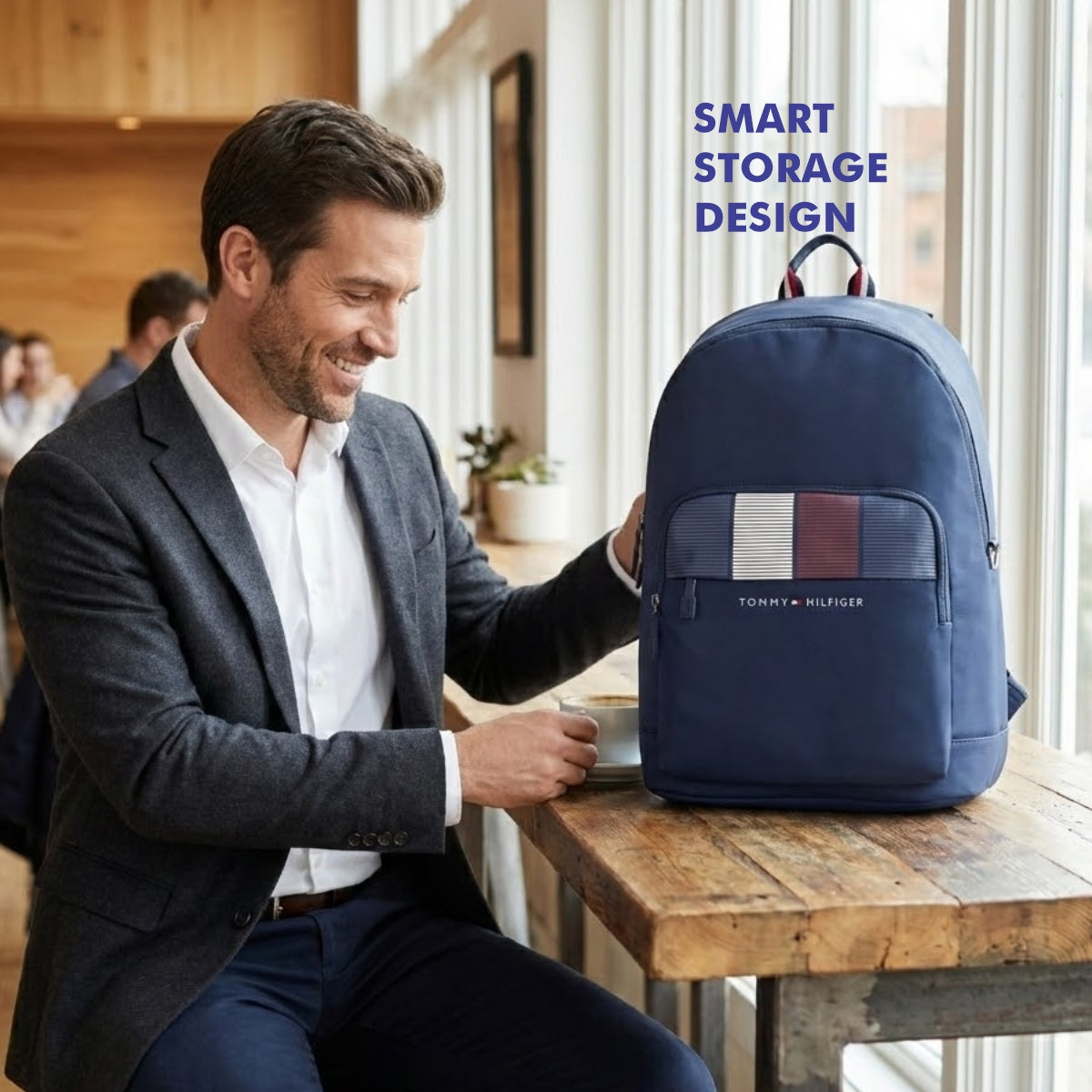 - Refined Design & Signature Detailing – Showcasing signature branding with branded zipper pullers and accent strap loops, this backpack embodies Tommy’s premium craftsmanship and modern aesthetic.