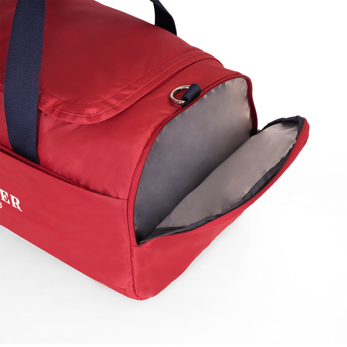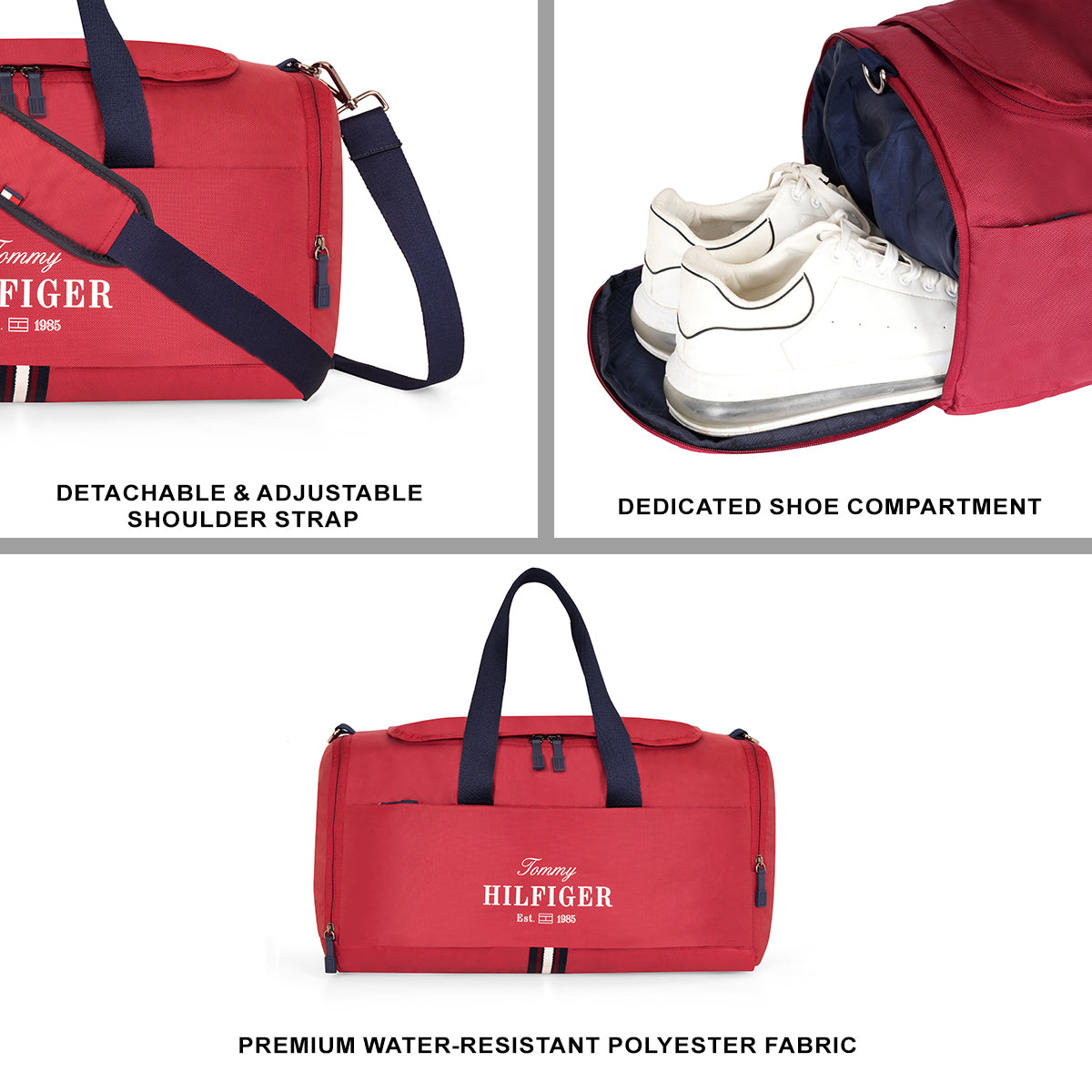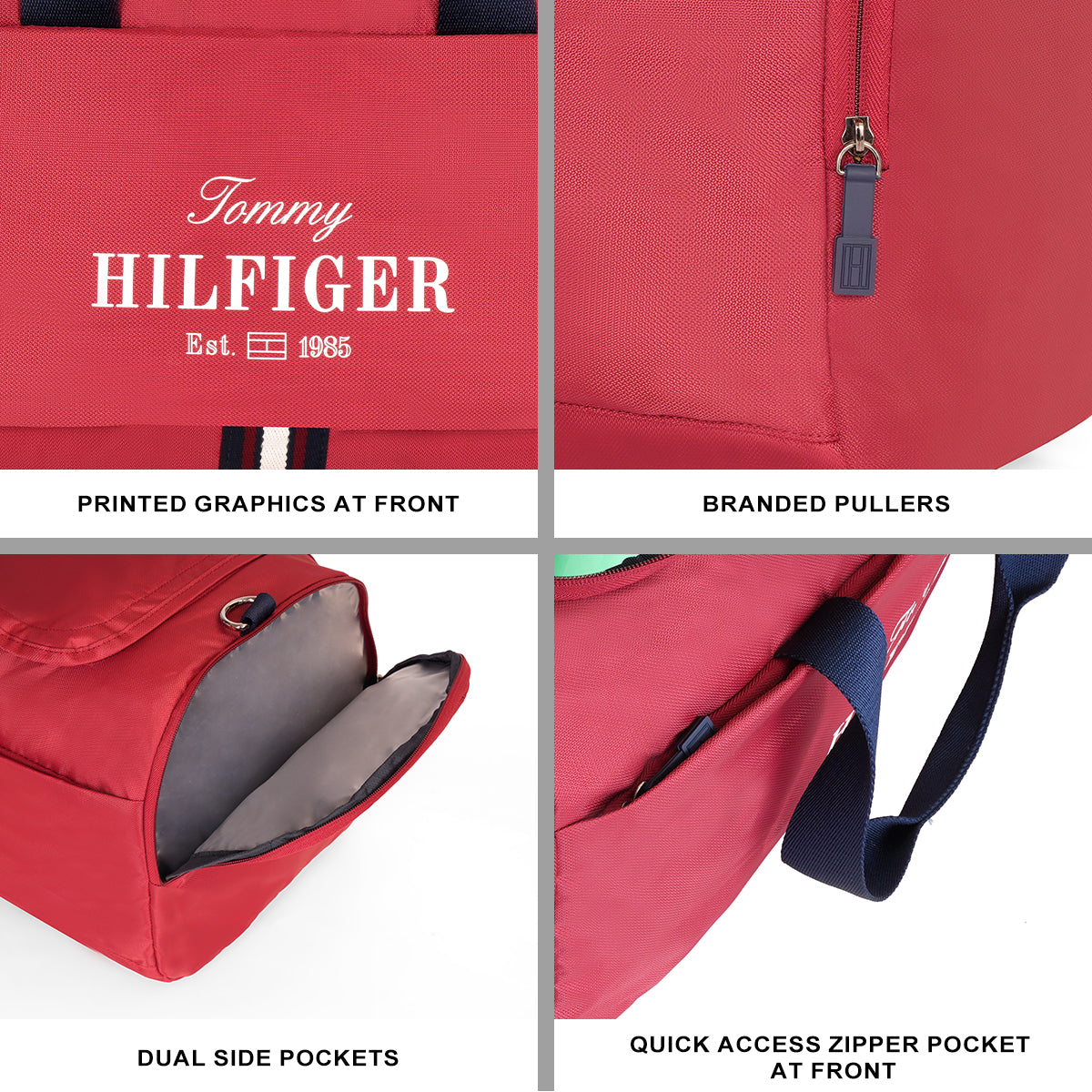 - Iconic Tommy Styling: Crafted from premium water-resistant polyester fabric, the bag showcases bold printed graphics on the front panel, branded pullers, and a sleek silhouette that blends sport with sophistication. The detachable and adjustable shoulder strap offers versatile carry options, making it perfect for gym sessions, weekend getaways, or daily commutes.