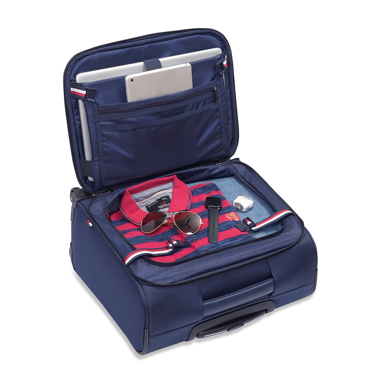 Organized Luxury: Achieve flawless organization with advanced storage features, including a laptop compartment and multiple pockets. Available in stylish navy, it’s the ultimate companion for your travels.
