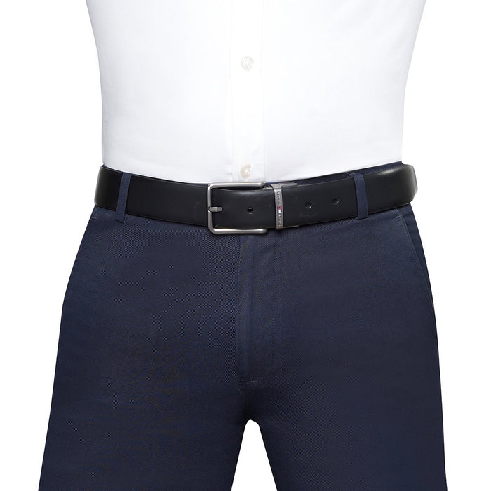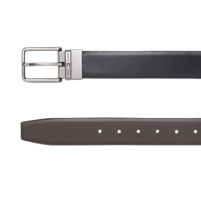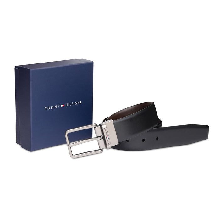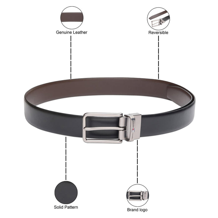 Dual-Tone Elegance: Introducing the Tommy Hilfiger Chimayo Men's Reversible Belt, featuring deep black and warm brown. This belt flips effortlessly to match your mood, with a solid design that enhances your style.