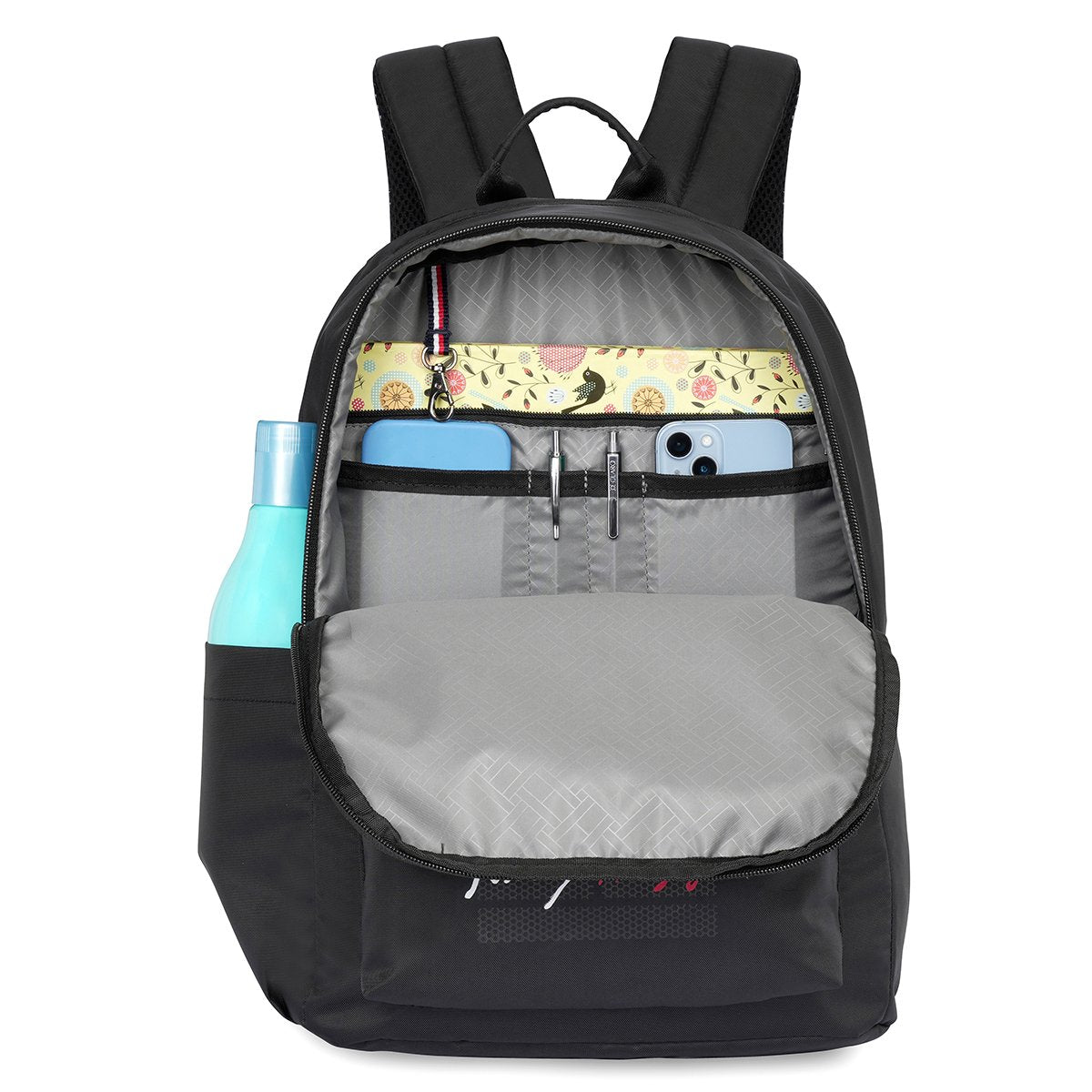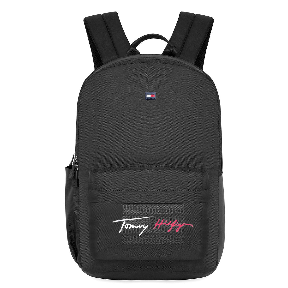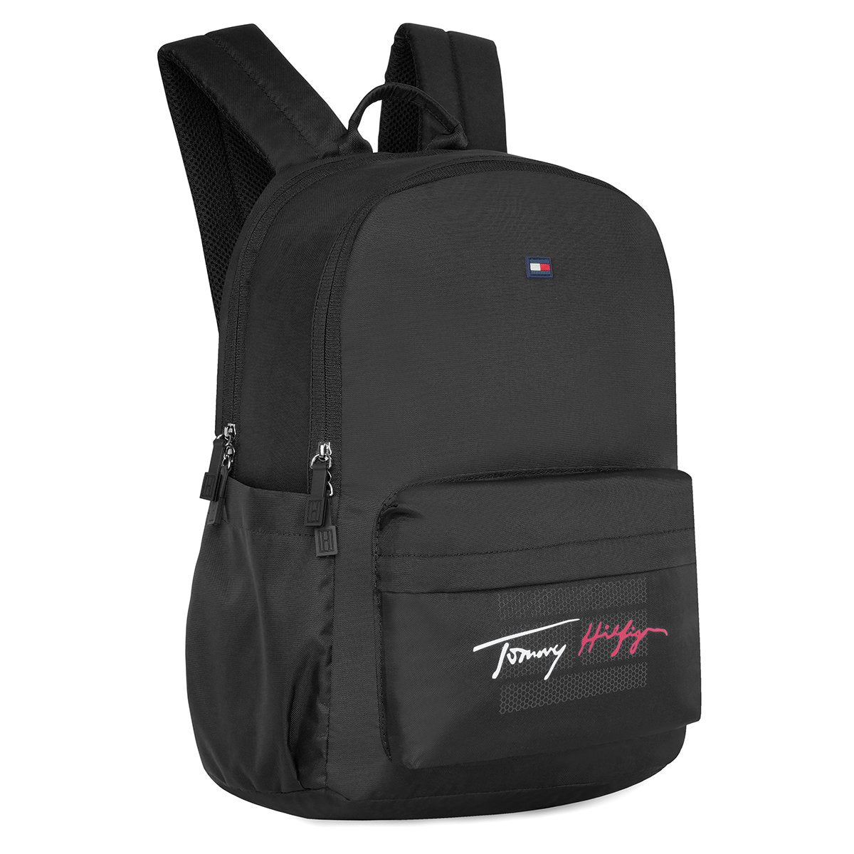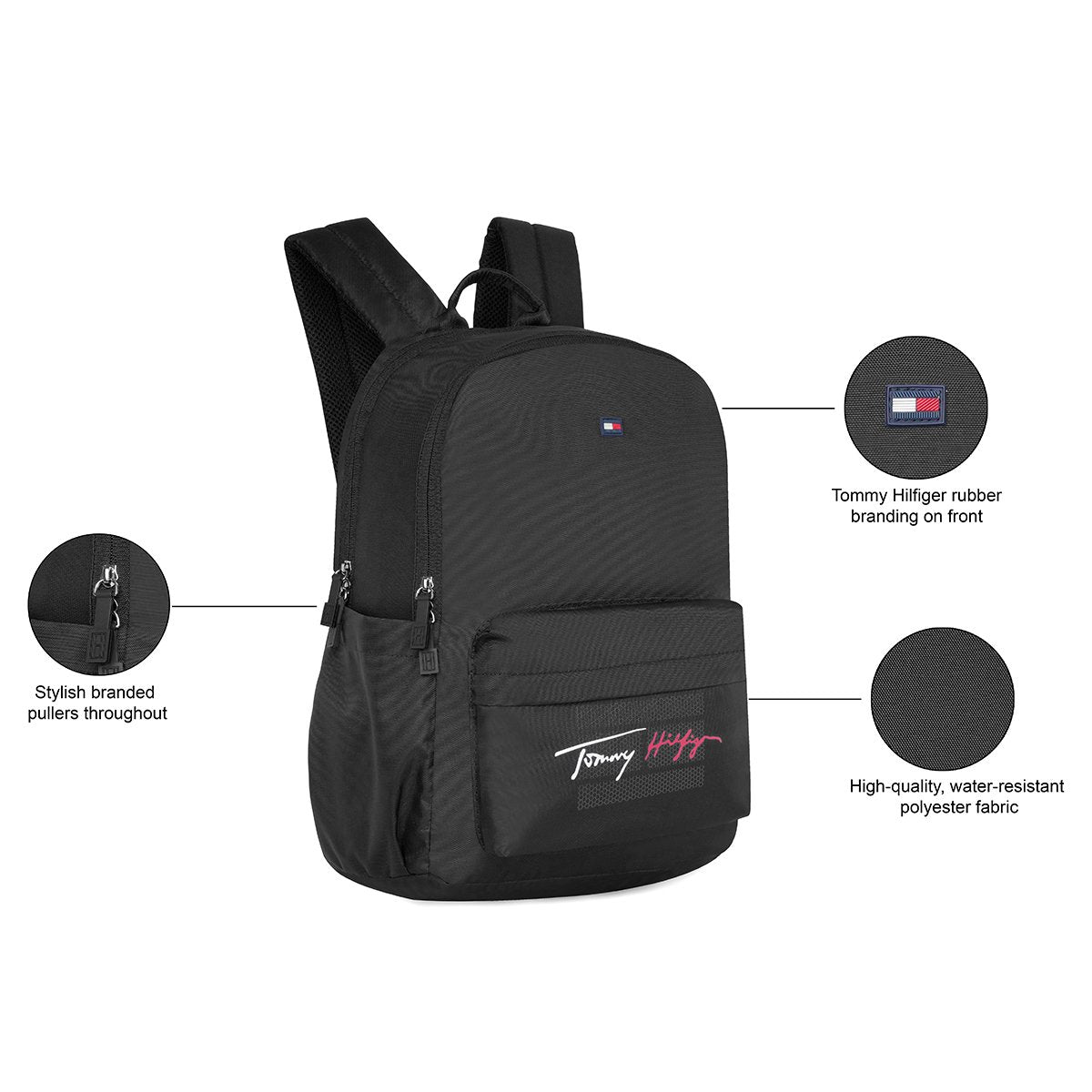Experience stylish and functional travel with the Tommy Hilfiger Clara Backpack. This water-resistant backpack boasts Tommy Hilfiger's iconic rubber branding on the front and branded pullers for an extra touch of flair. Your tech is safely stored in the dedicated iPad and laptop compartment, while the compact organizer and key holder keep your essentials tidy. Stay refreshed on-the-go with the hydration spot, perfectly designed for your water bottle. Navigation is effortless thanks to the trolley holder, allowing for seamless airport maneuvers. With its perfect blend of style, functionality, and durability, the Clara Backpack is ideal for the modern traveler.
