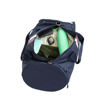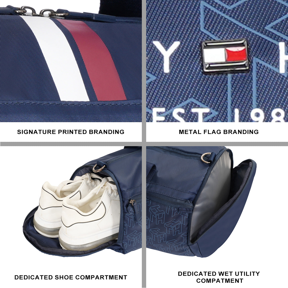 Equipped with dual side compartments, one dedicated for shoes and another for wet utility items, this bag keeps your essentials separated and fresh. A mesh pocket provides quick access to smaller items, while the accessory holder ensures valuables stay secure.