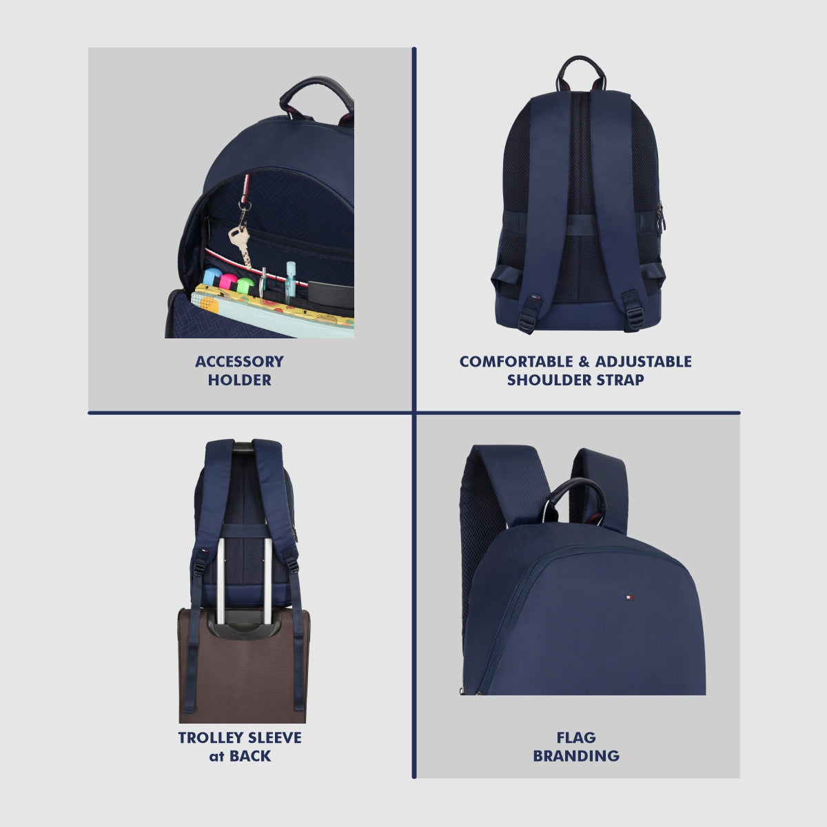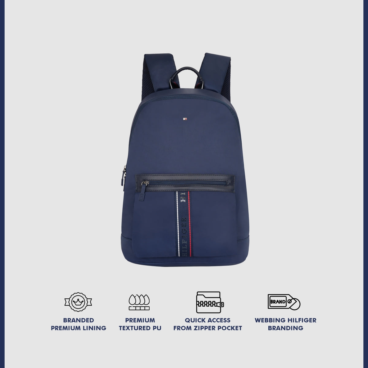 - Signature Branding Elements: With flag branding on the front, webbing Hilfiger branding, and branded zipper pullers, the bag showcases its designer heritage. These details elevate the overall aesthetic and reflect a commitment to style and quality.