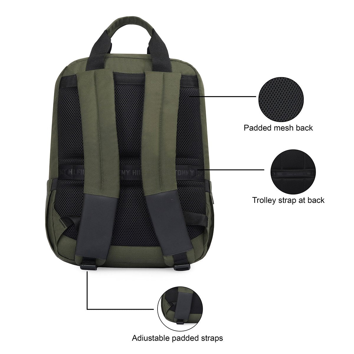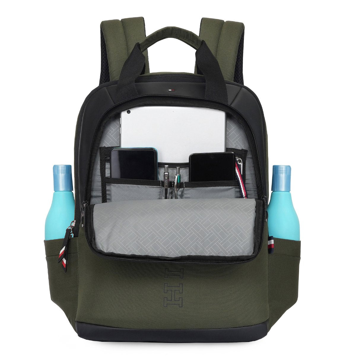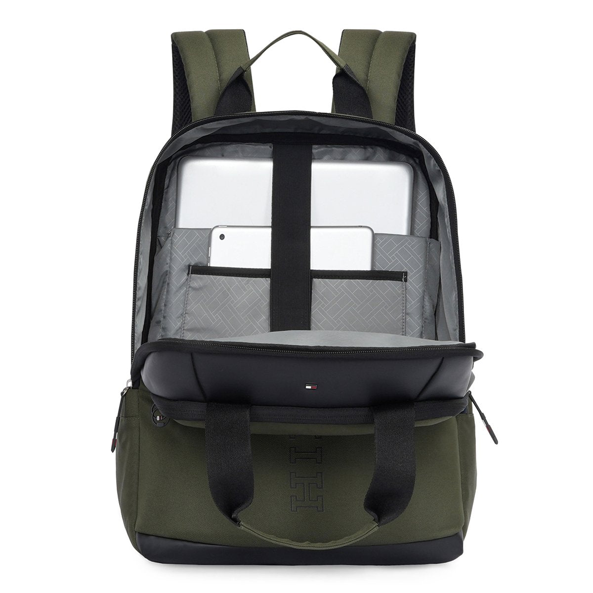 Introducing the Tommy Hilfiger Hornet Backpack, a perfect blend of style, functionality, and durability. Designed for the modern professional, this backpack features an elegant embossed print on the front panel and iconic Hilfiger flag metal branding. The water-resistant fabric ensures your belongings stay dry, while the sleek design adds a touch of sophistication to your daily commute or business trips. With ample storage options and comfortable carrying features, the Hornet Backpack is your ideal companion for any occasion.