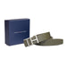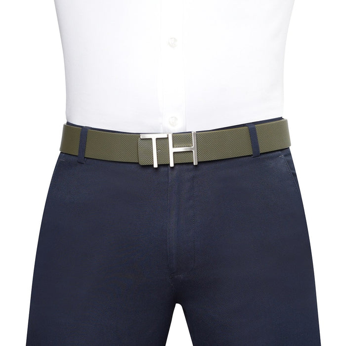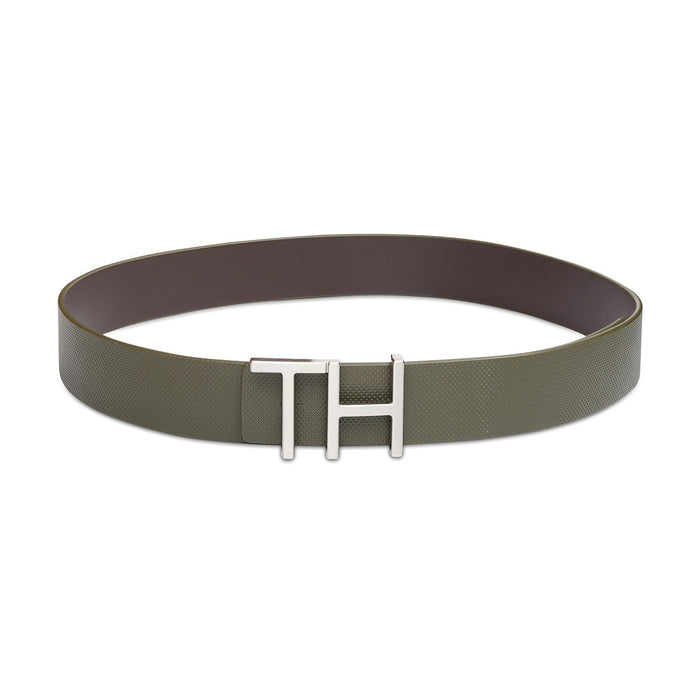 Seamless Versatility: Presenting the Tommy Hilfiger Murcia Men's Reversible Belt, combining warm olive and deep brown. Its reversible design adapts to your style needs, with an intricate texture that adds a touch of elegance.