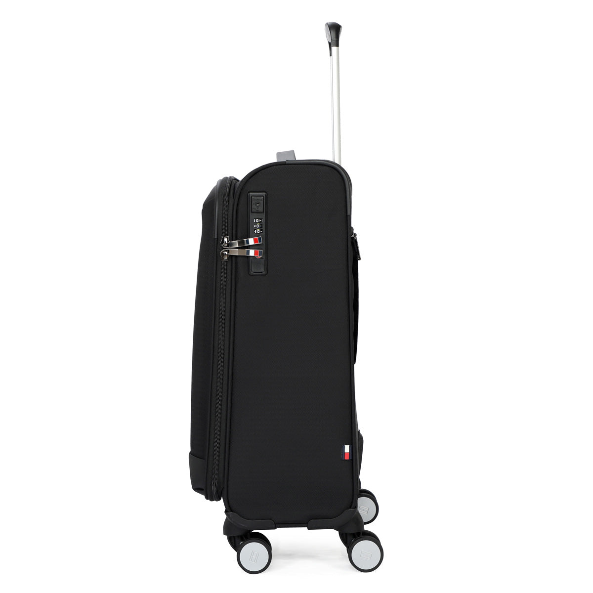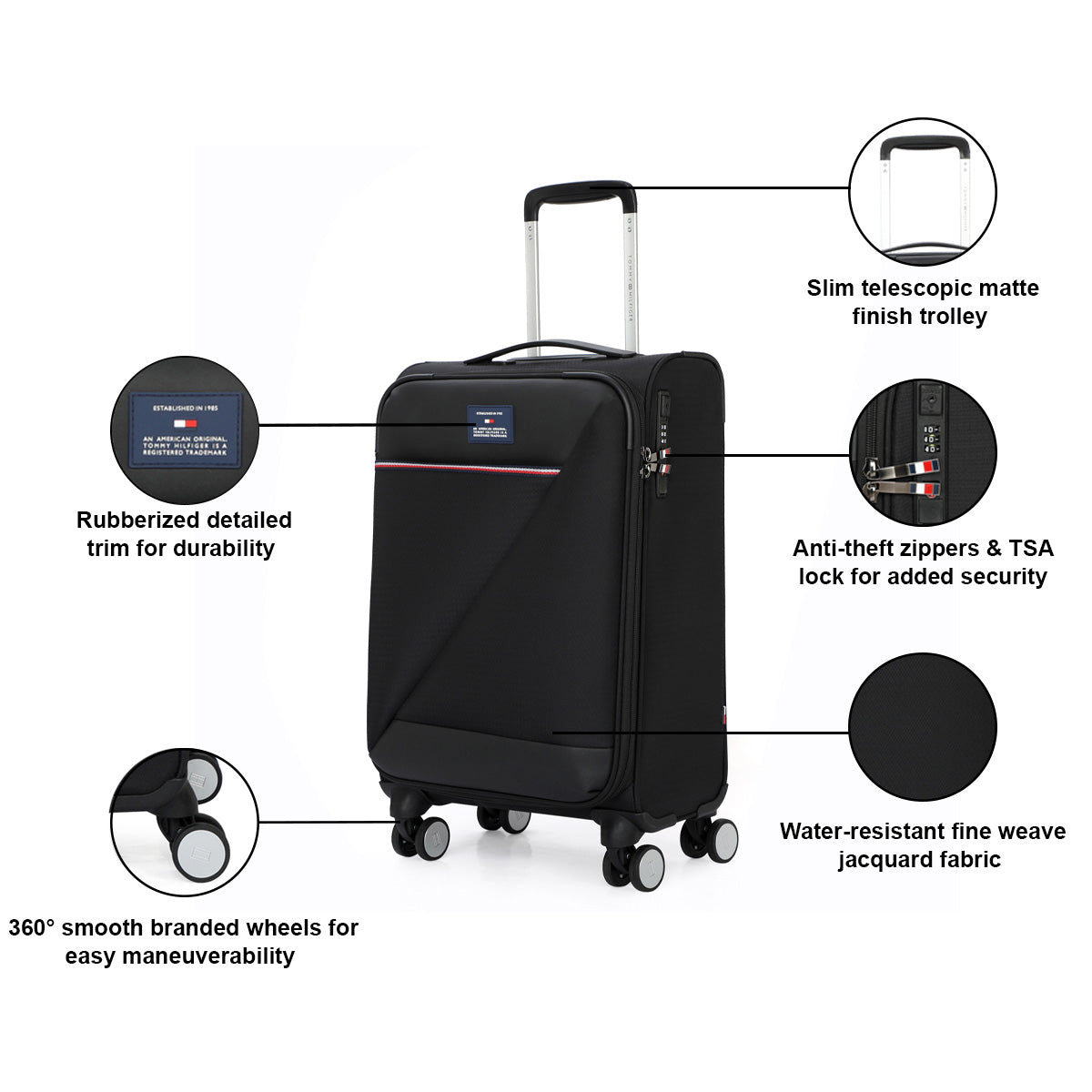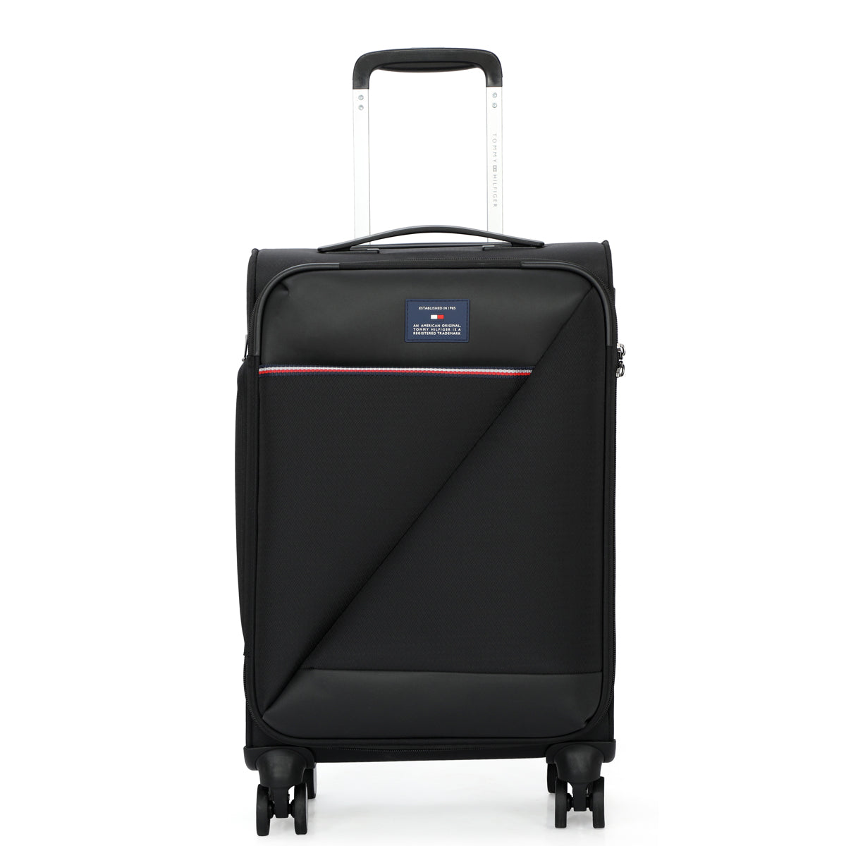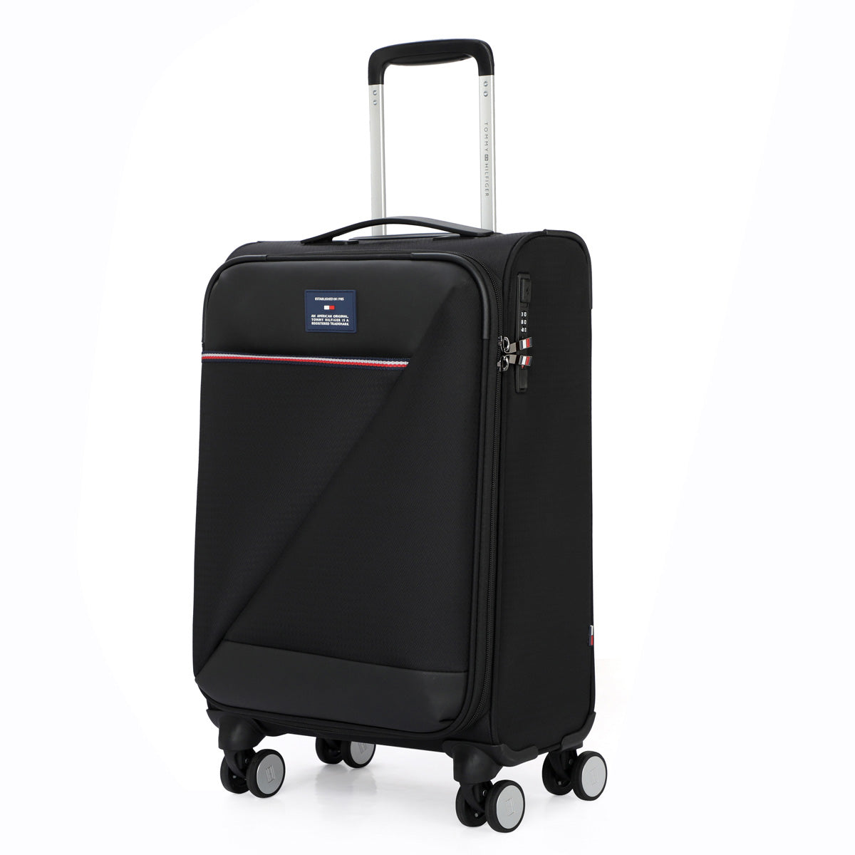 Tommy Hilfiger's San Diego Soft Luggage is designed for the modern traveler, with water-resistant fabric, a slim telescopic handle, and 360° branded wheels for effortless rolling. Secure your belongings with anti-theft zippers and a TSA lock. Glide through your journeys with this versatile and stress-free luggage.