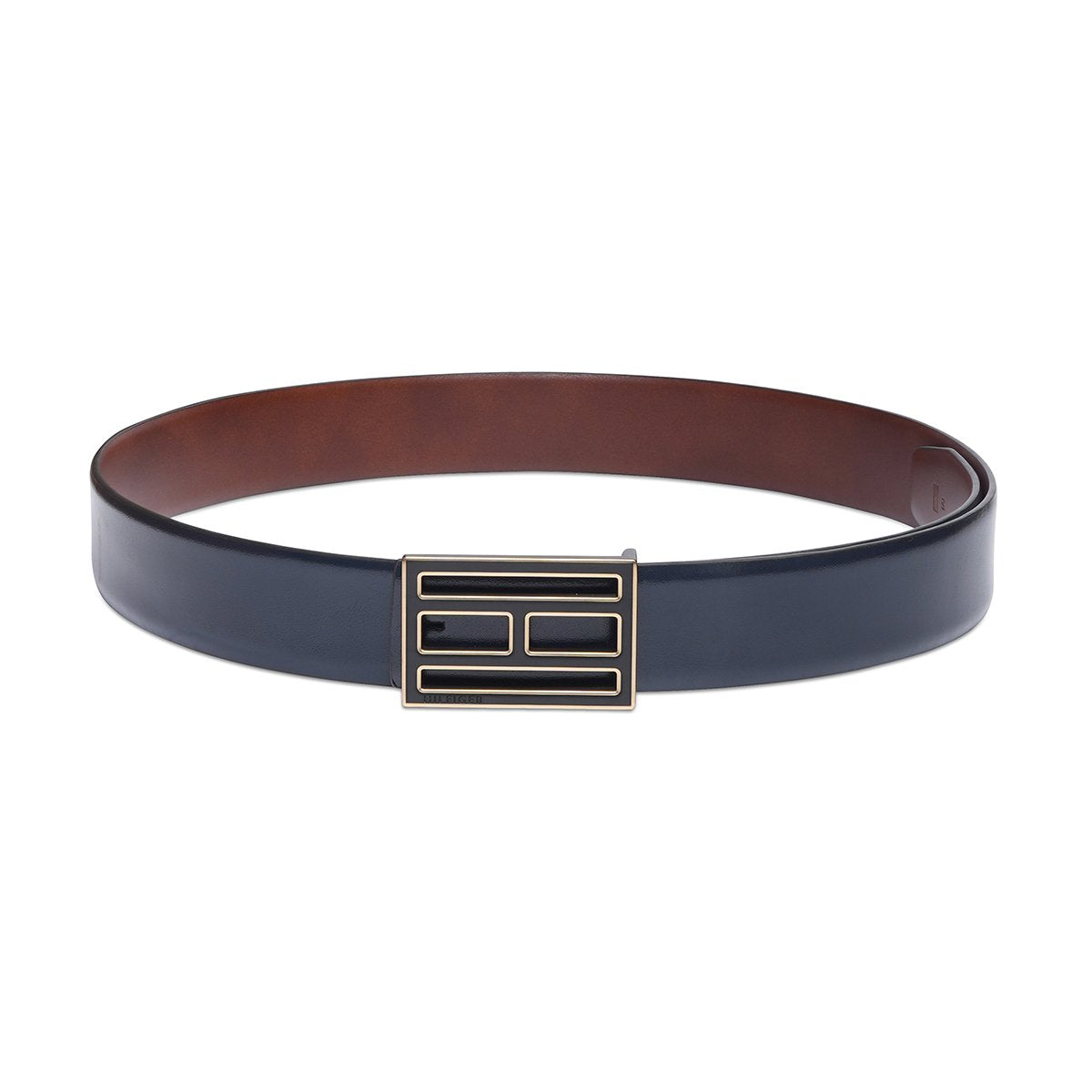Reversible Style for Dynamic Looks: This Tommy Hilfiger Sewanee Men's Reversible Belt empowers you to switch your style game between navy and tan depending on the look you want to create. A reversible design keeps your style fresh and effortless, whether you are dressing up or down.