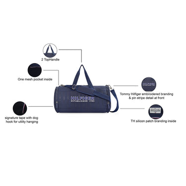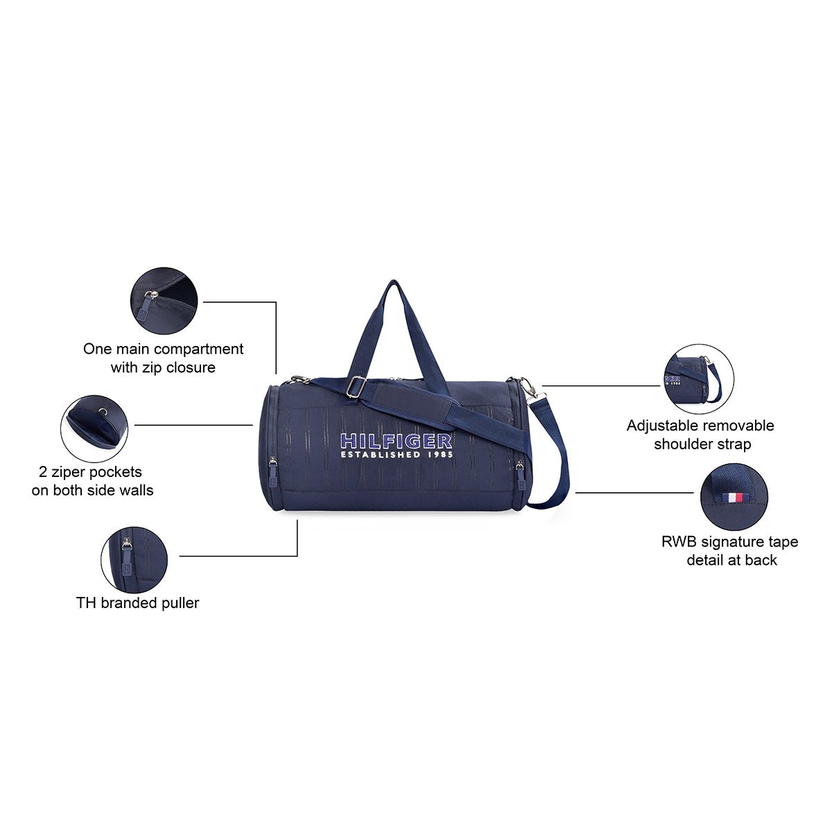 Introducing the Tommy Hilfiger Typhoon Unisex Duffle Bag- a stylish and functional companion for your active lifestyle. Crafted from water-resistant polyester fabric, this gym bag ensures durability. The secure zipper closure, adjustable strap, and single compartment with one pocket offer convenient access.Elevate your gym experience with the added bonus of a PVC pouch and Tommy Hilfiger's iconic embroidery and line print. The Typhoon Duffle Bag is more than just a gym essential- it is the perfect accessory to complete your gym look.