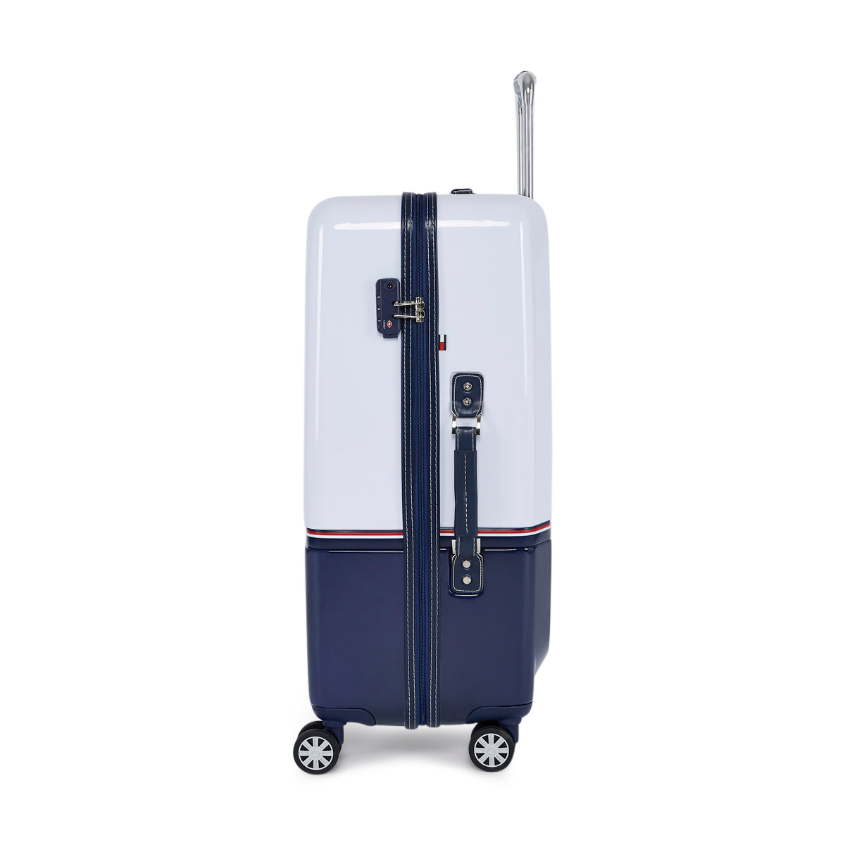 Tommy Hilfiger Twins Pro unisex hard luggage is made for easy commute. The luggage is curated using sturdy and resilient material. On the side of the luggage bag there is a non-slip side foot supporter which gives your bag a grip to stay intact during a turbulent journey.