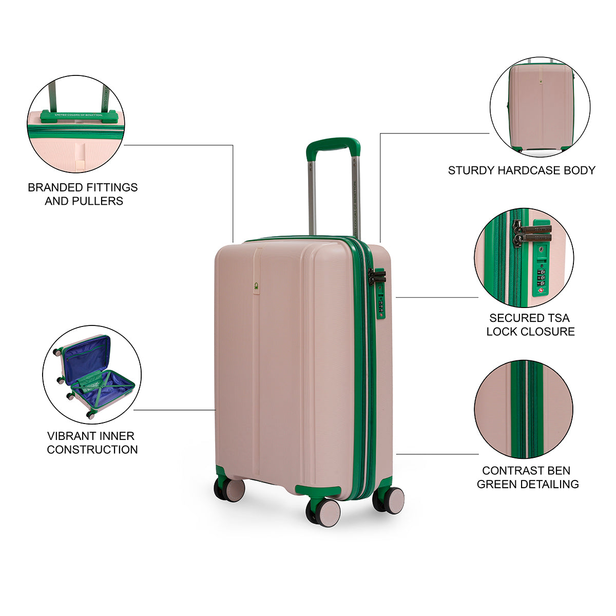 Dive into a world of travel sophistication with The United Colors of Benetton Emerald Hard Luggage Bag, a true standout in the travel arena. Its TSA lock ensures security is as tight as your travel schedule, while vibrant contrast details exude elegance. Built tough yet light as air, the Emerald Luggage bag navigates turbulence with ease. Glide effortlessly on any terrain with smooth wheels and a retractable trolley handle, making every journey a stylish breeze. The perfect fusion of durability and flair, this luggage gem transforms your travel game, promising a seamless adventure filled with style, security, and a touch of wanderlust charm.