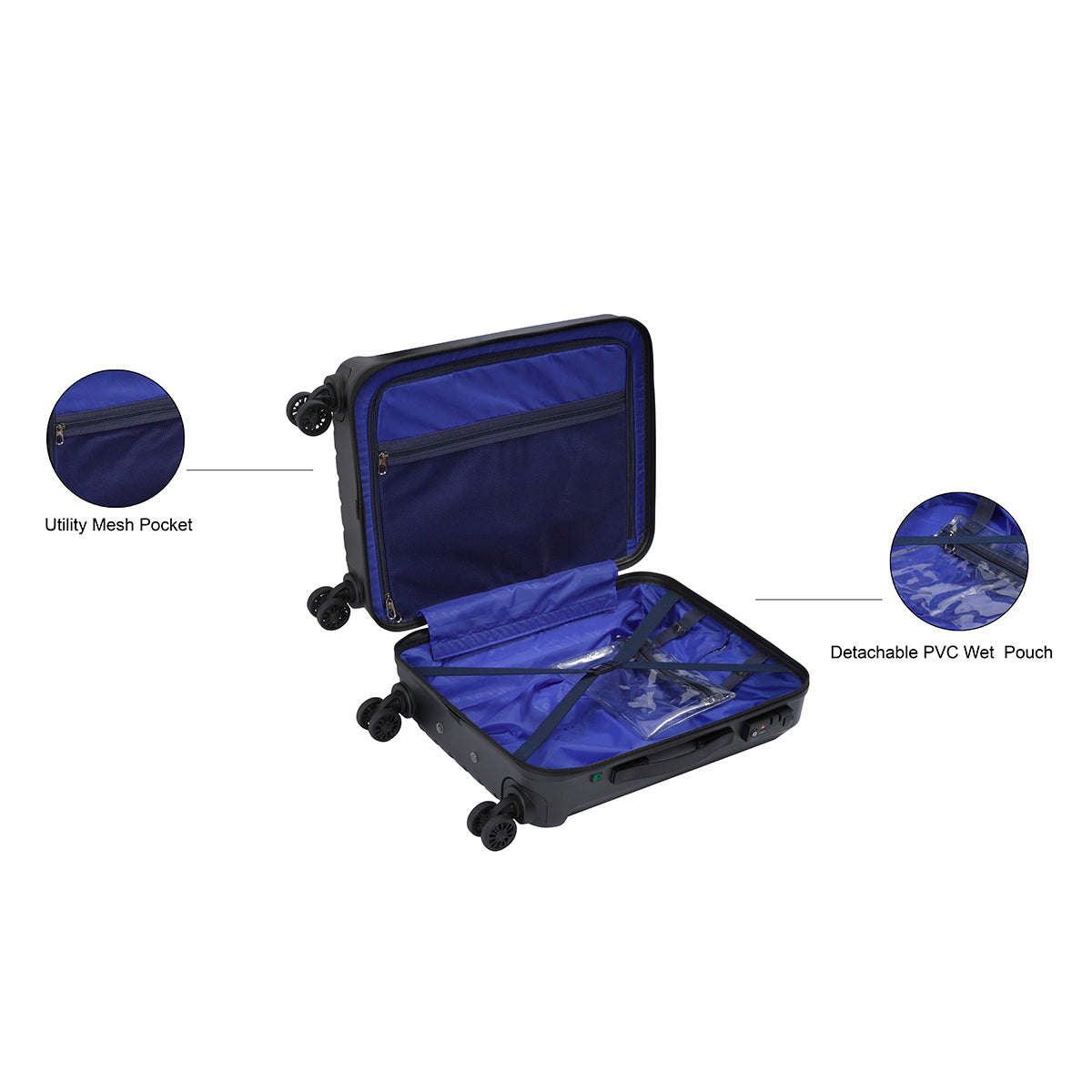 Convenience is the design of the Cobalt, which offers multiple carrying choices with its retractable trolley handle and top handle. With its eight wheels and double-wheel design, it can be easily maneuvered through busy terminals. Examine the well-thought-out interior, with 190 T Taffeta lining it holds two pockets, and one compartment for effective packing along with a TSA lock enhancing security.