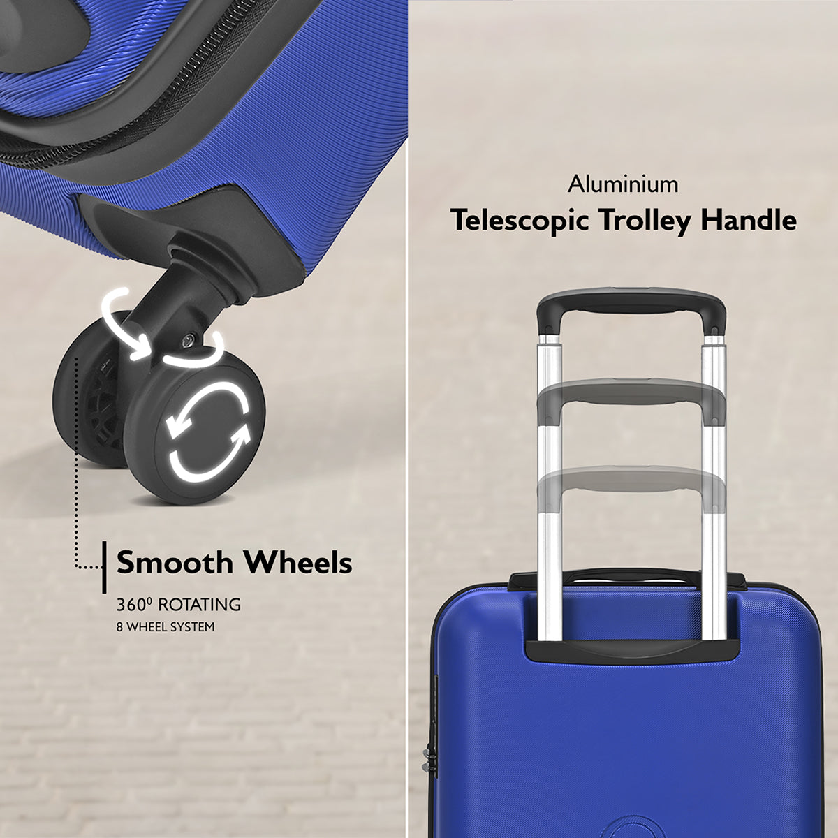 Effortless Mobility: Equipped with a smooth 8-wheel system that offers 360-degree maneuverability, making travel seamless across all surfaces.