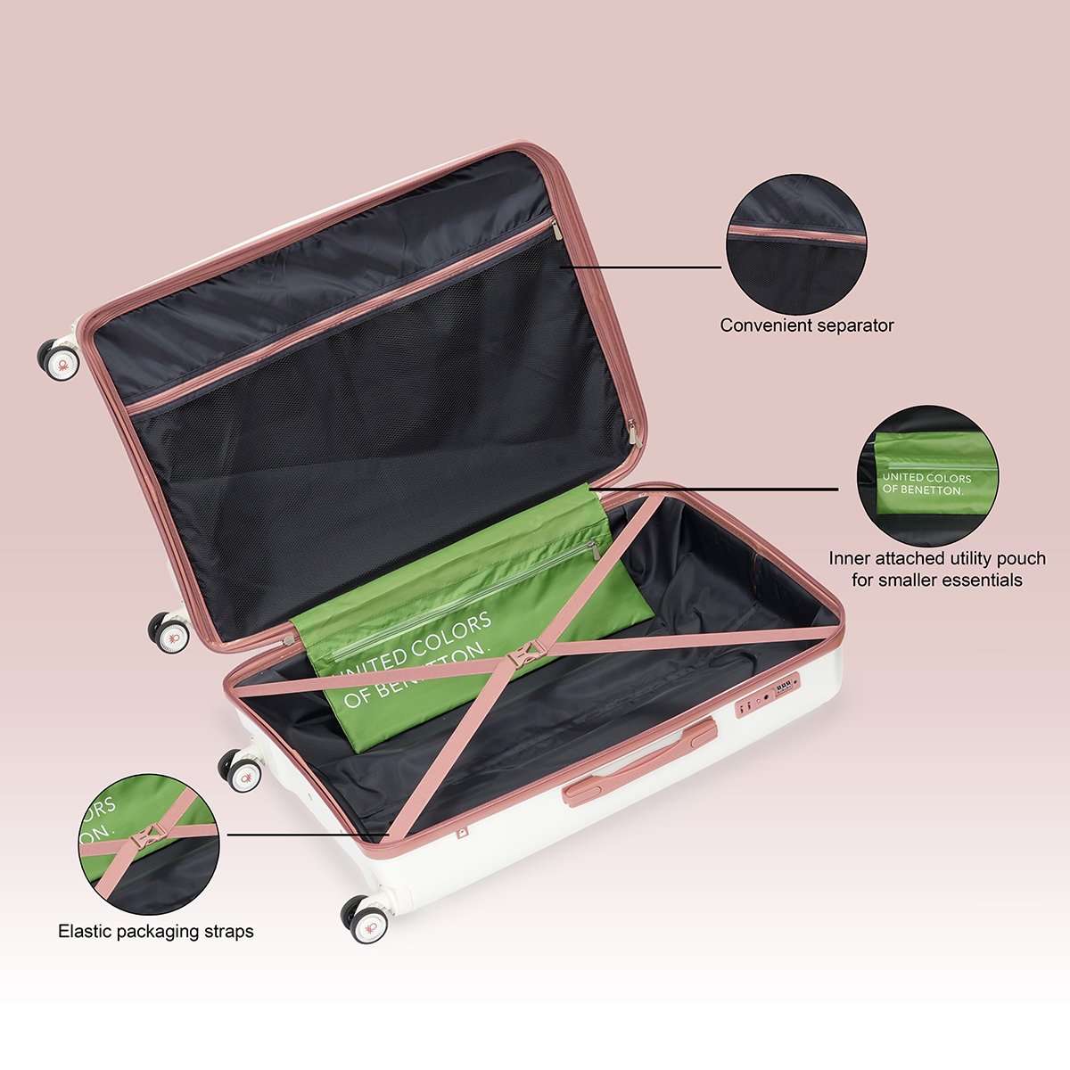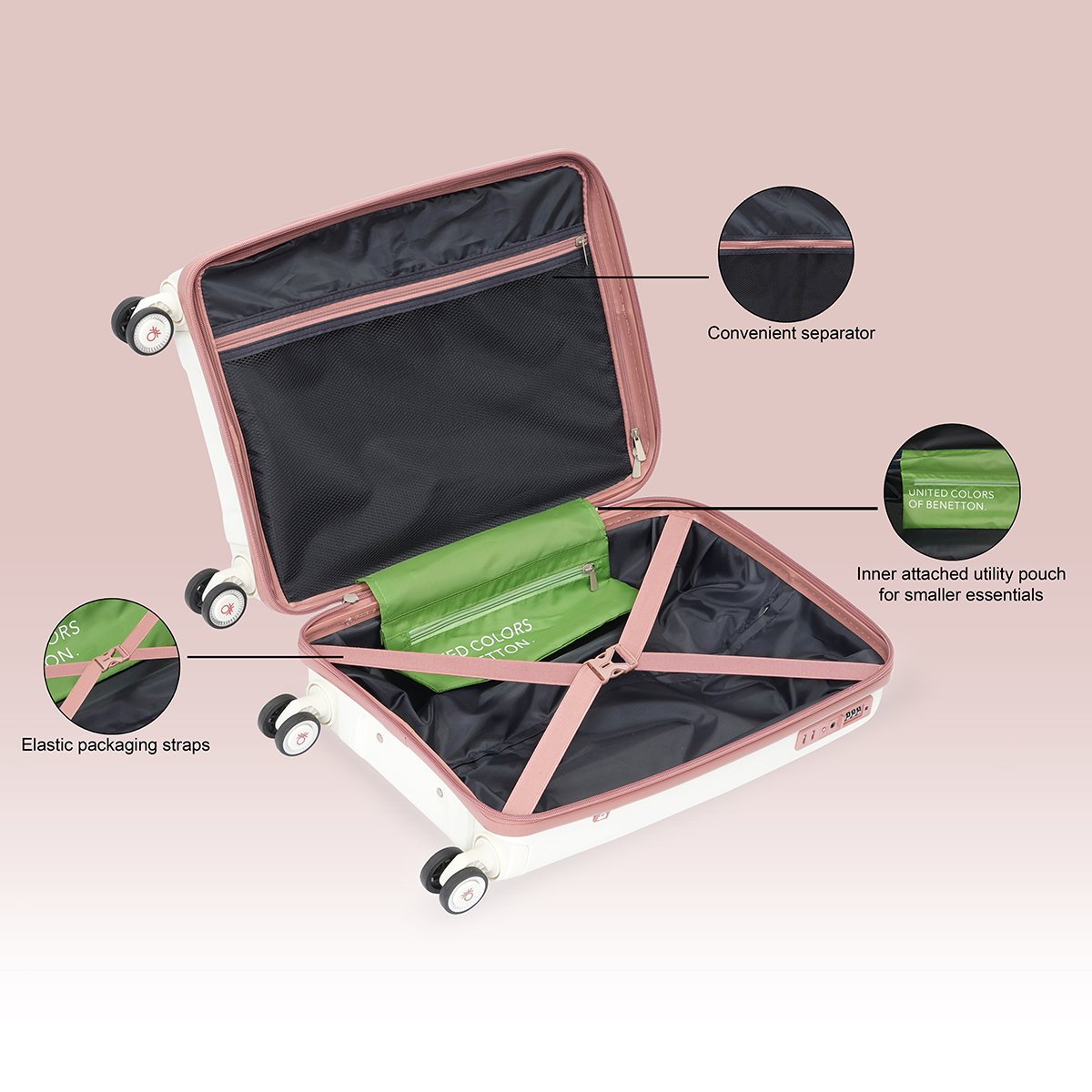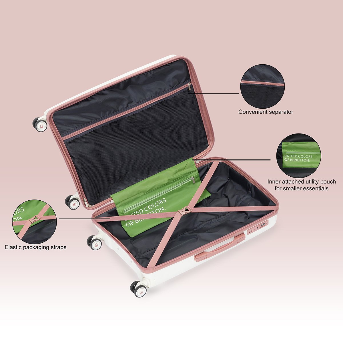 Whether you're embarking on a weekend getaway or a longer trip, the United Colors Of Benetton's Opal Unisex Medium Size Travel Gear Hard Luggage is the perfect choice for those who value both style and functionality.