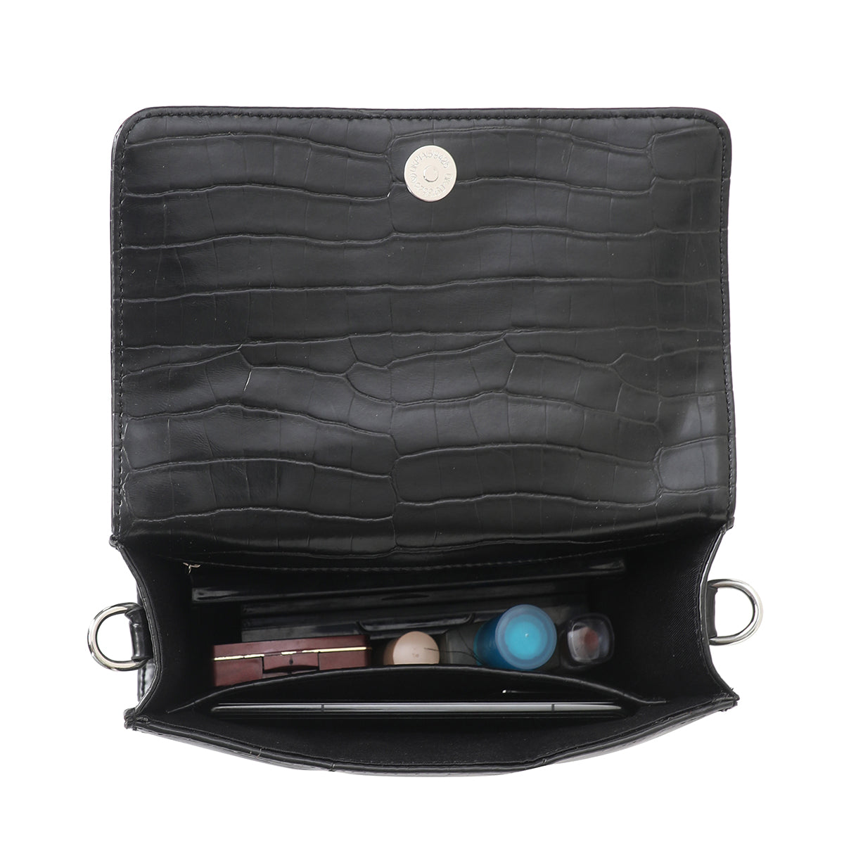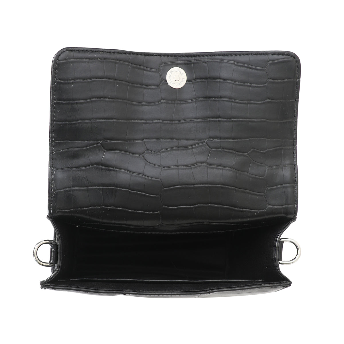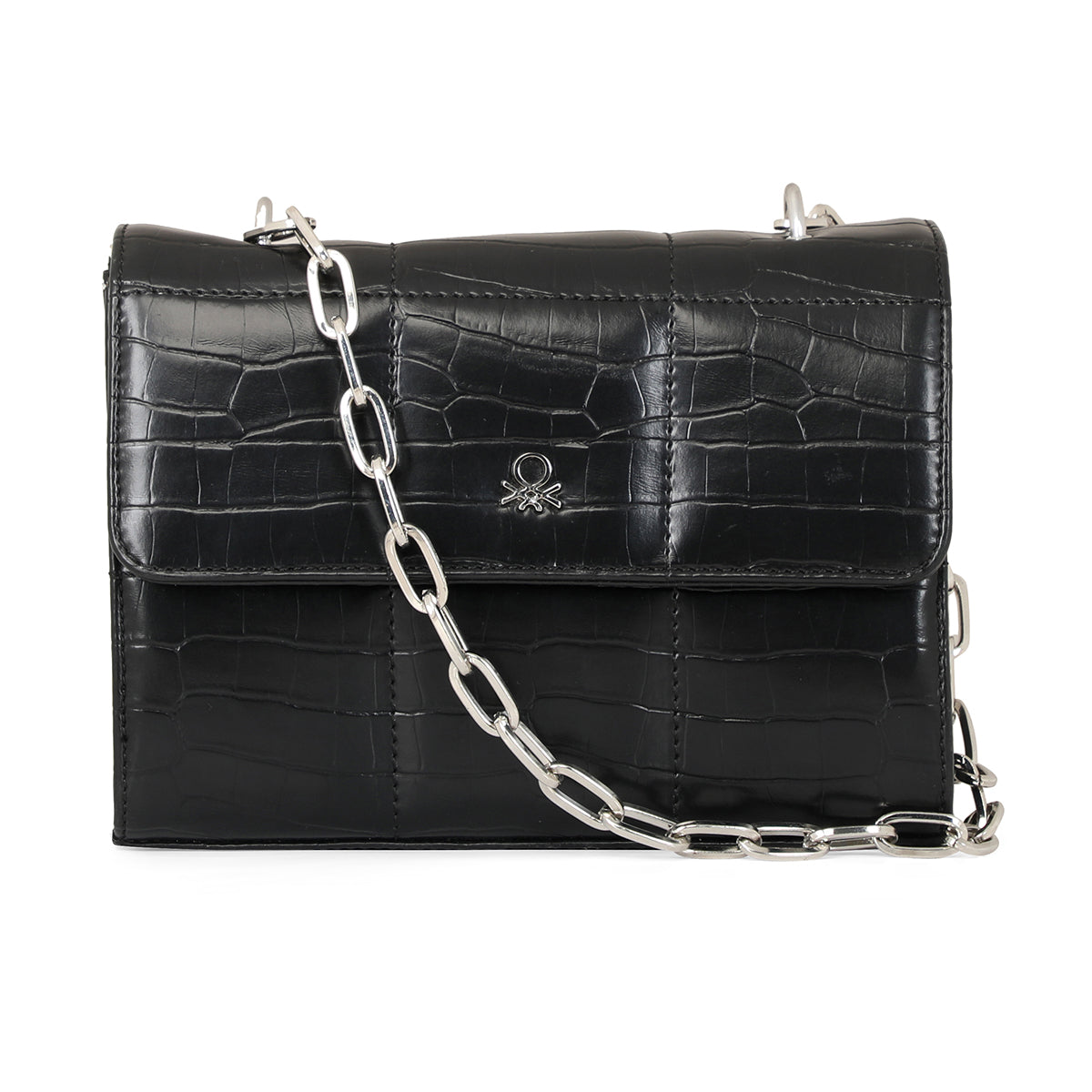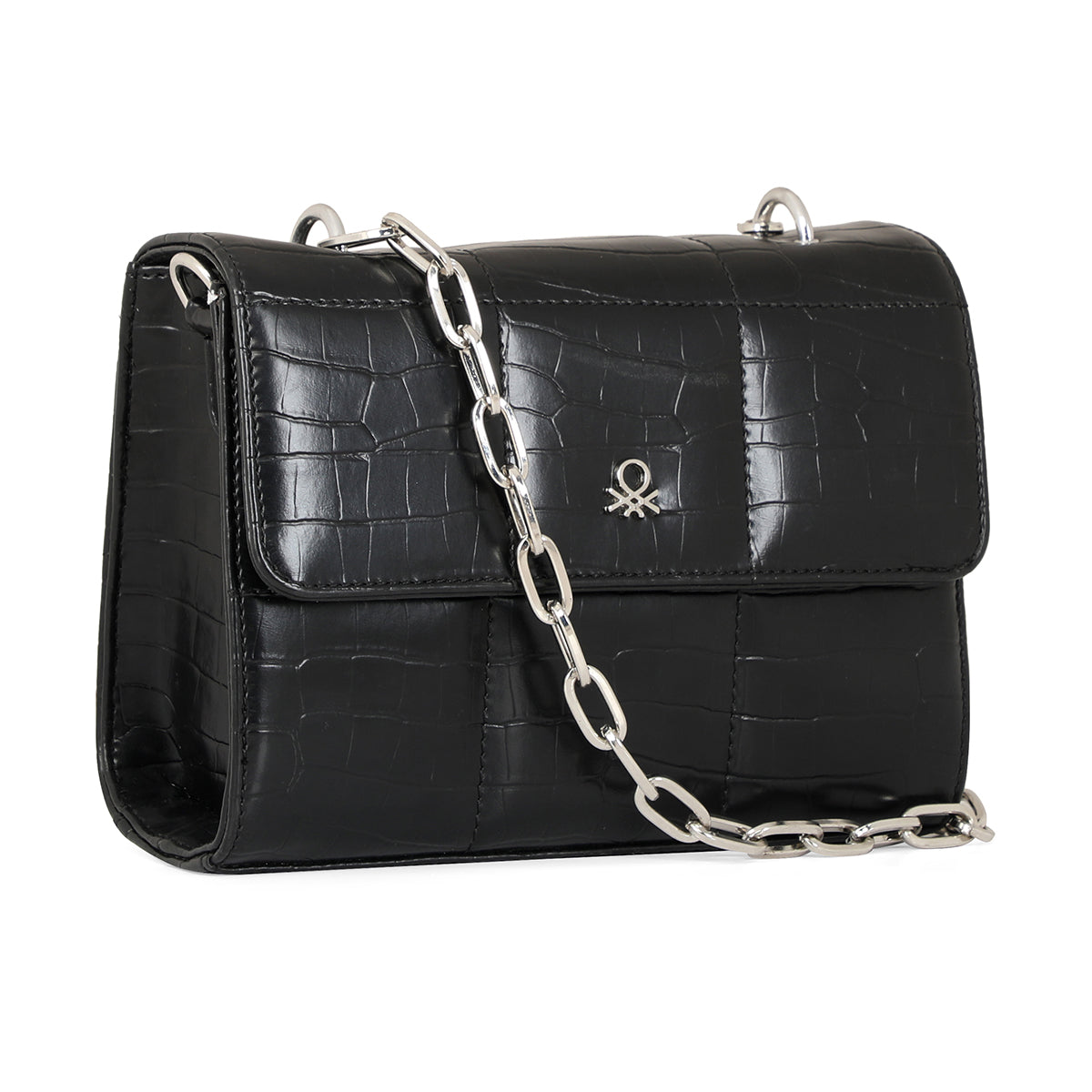 Unveil a touch of elegance with the Candace Sling from the prestigious United Colors of Benetton. This sling bag, with its croco-textured pattern, is a blend of style and functionality. The shiny nickel trim adds a dash of sophistication, while the flap closure ensures your belongings are secure. Crafted from premium PU, the bag's interior, lined with durable polyester twill, features one zip and two inner pockets for organized storage. The detachable PU strap offers versatility in styling. Adorned with a 15-inch UCB logo and a unique knot logo, the Candace Sling is a testament to Benetton's commitment to unparalleled style and quality.
