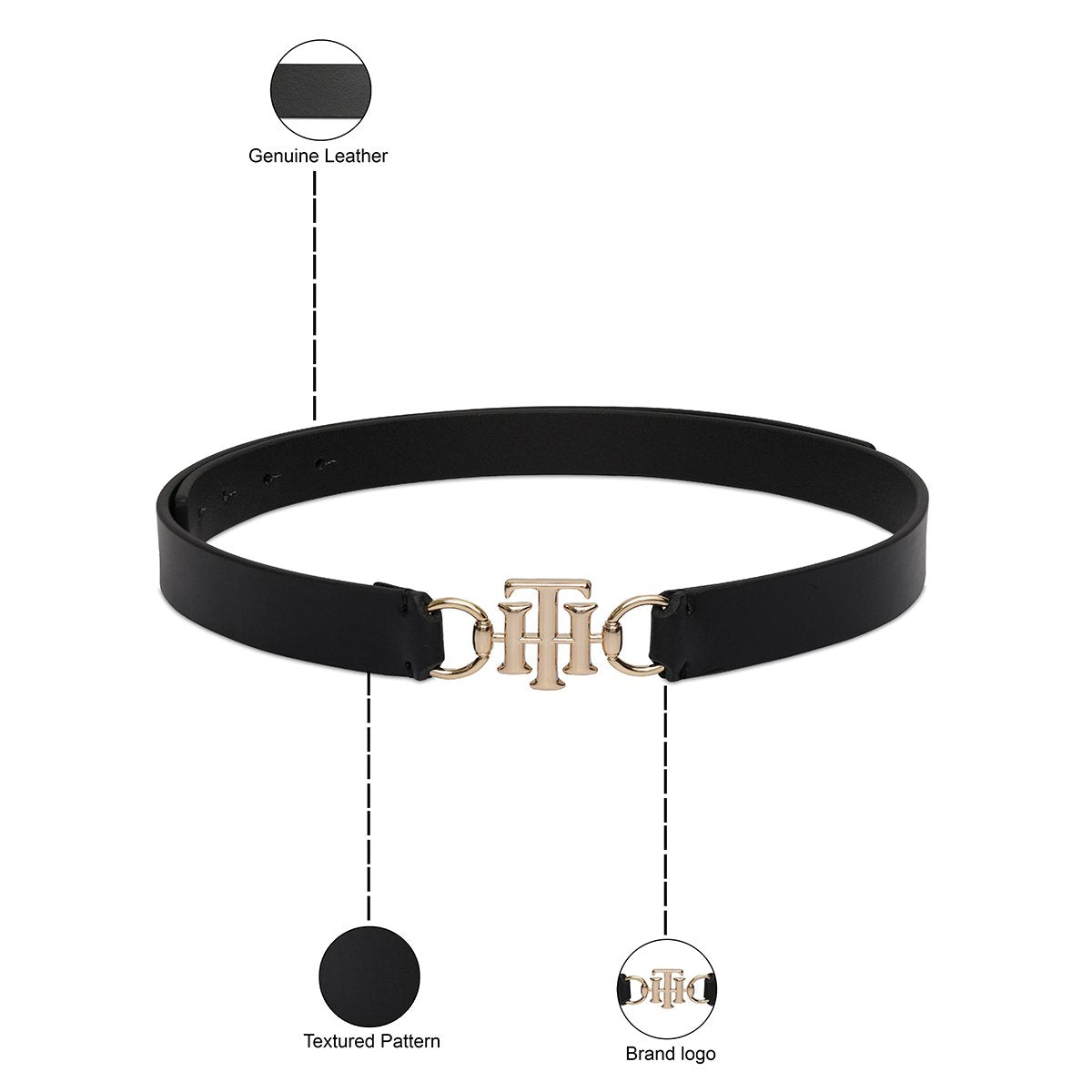 Elegant Texture: The Tommy Hilfiger Yuki Women’s Non Reversible Belt in Black exudes elegance. Its textured leather adds a sophisticated touch, perfect for elevating any one-piece ensemble.