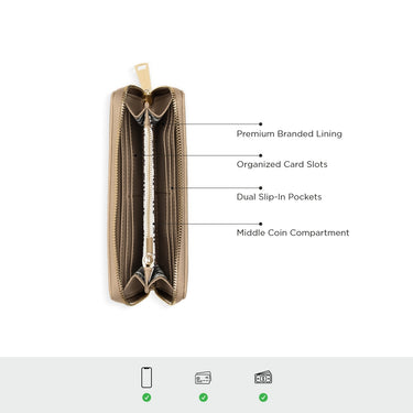 With a premium branded lining, structured card slots, a zippered coin compartment, and two slip-in pockets — it keeps your must-haves organized and always within reach.