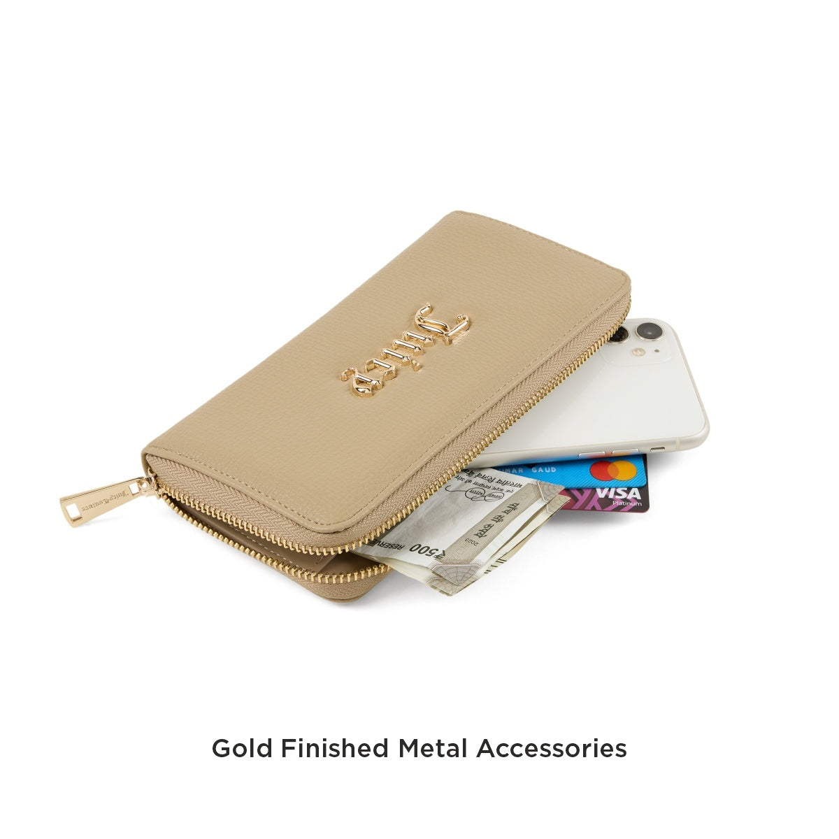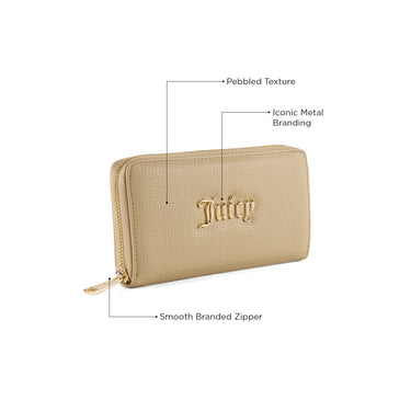 Made with luxe pebbled texture, bold Juicy branding, and gold-finished metal accents — this wallet is all about everyday glam with effortless style.
