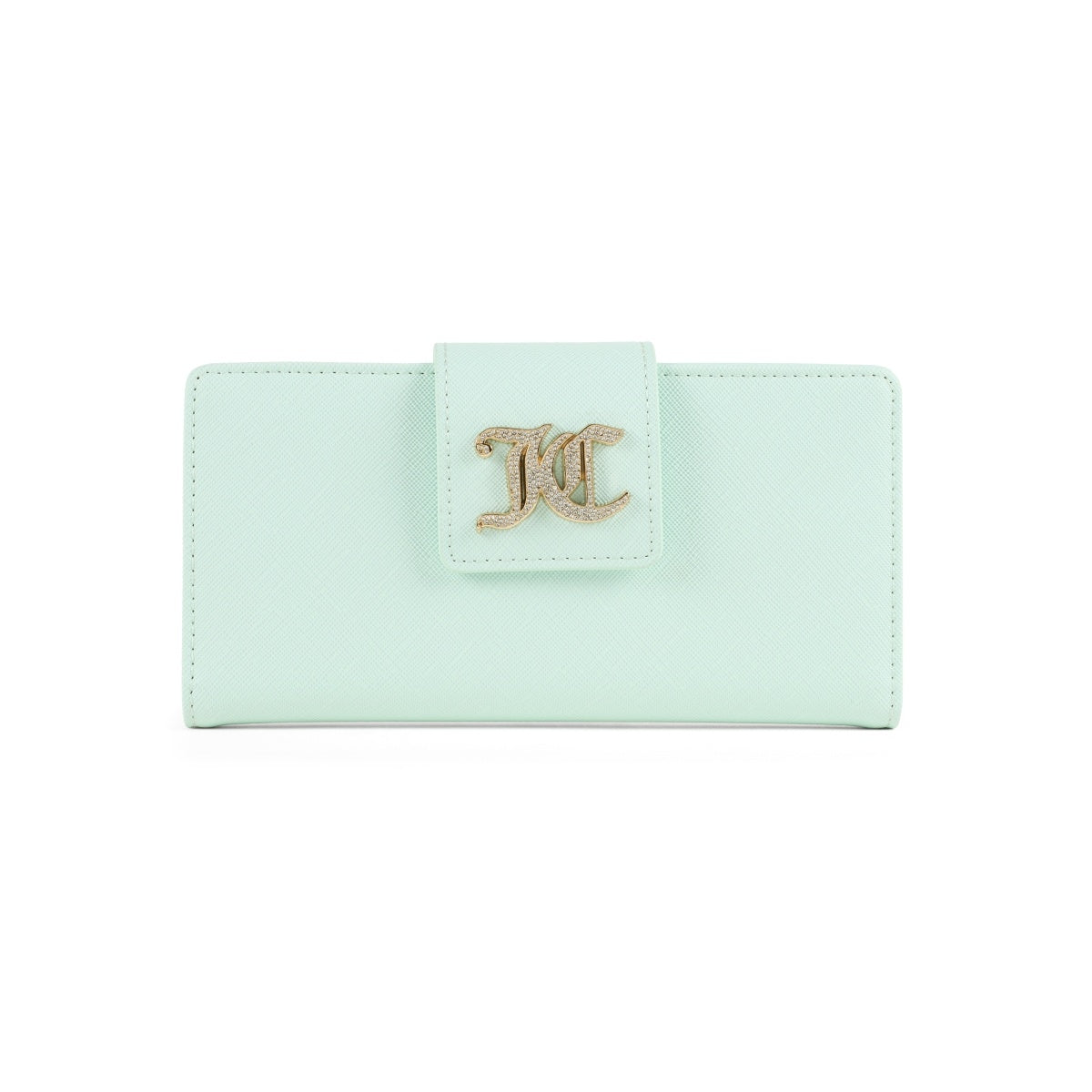 Featuring a luxe textured PU body and rhinestone-studded Juicy branding, this piece is made to shine. The magnetic flap closure and gold-finished accessories tie it all together in signature Juicy flair.