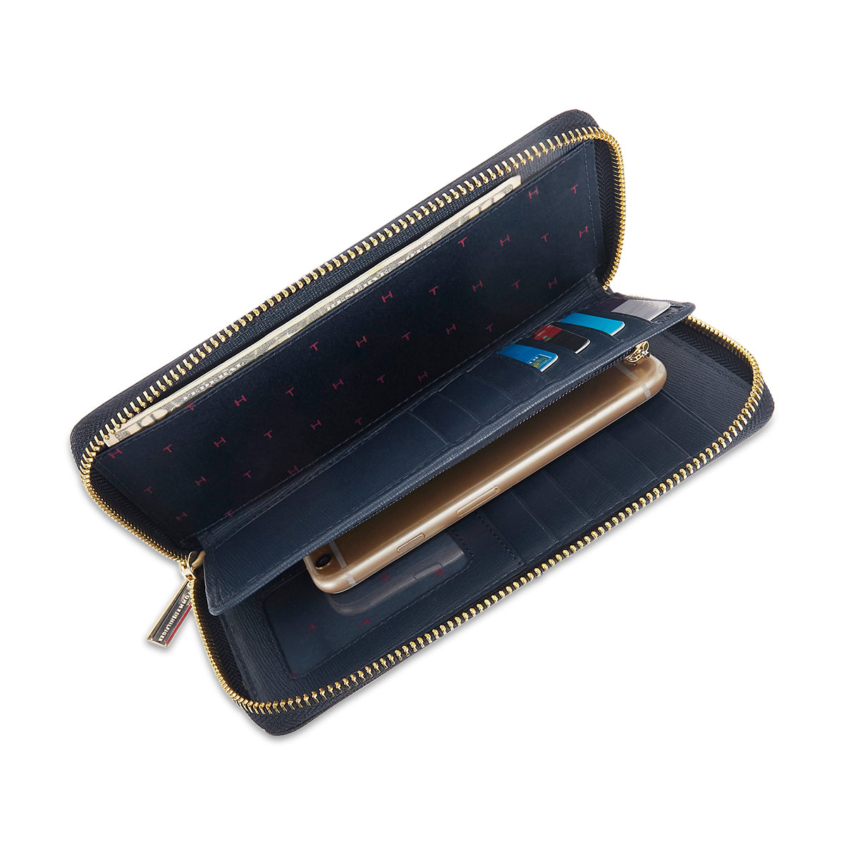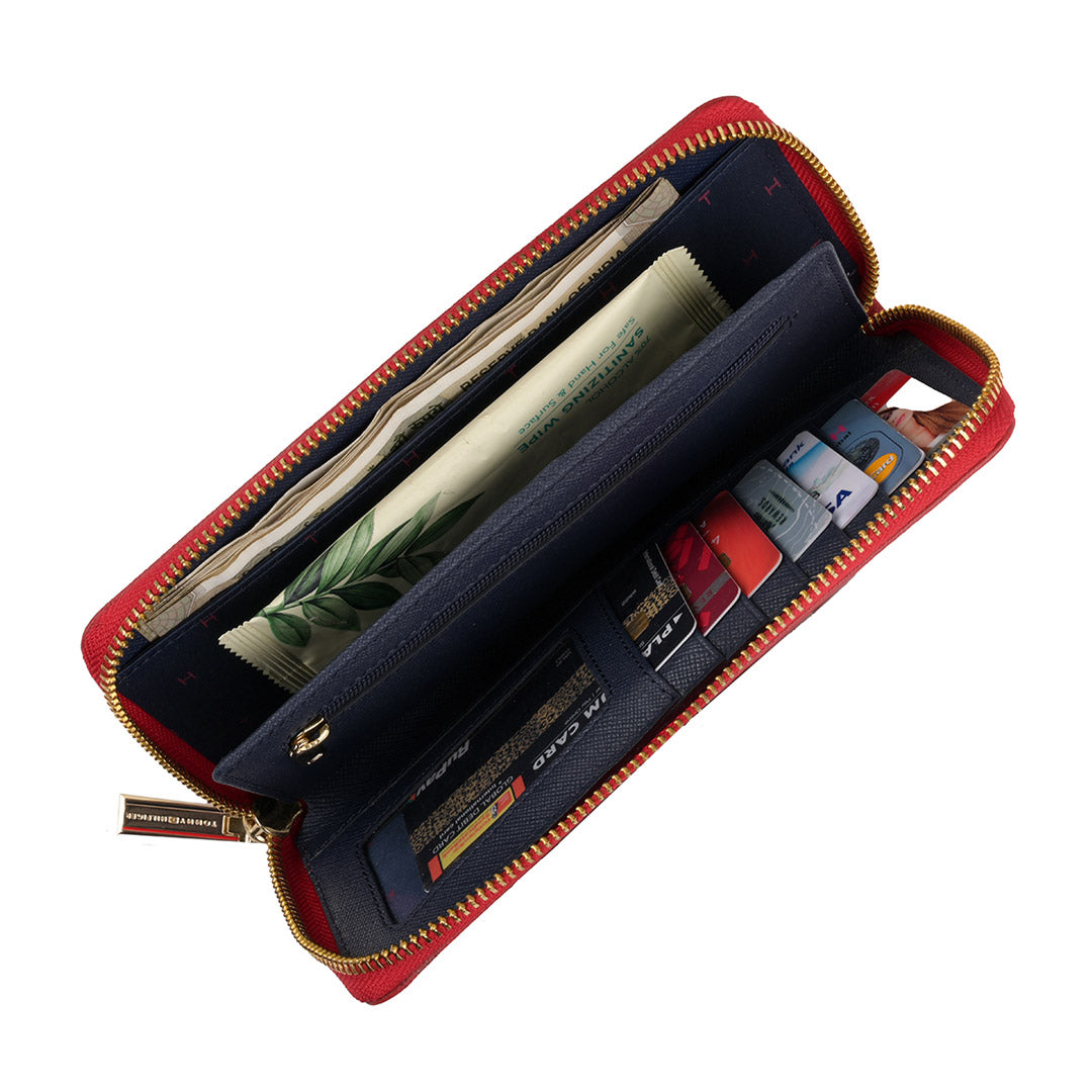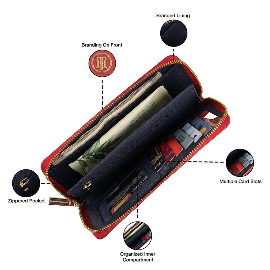 The Tommy Hilfiger Almora Women's Leather Wallet is a fashionable and functional accessory designed to elevate your style. Crafted from high-quality leather, this wallet features a zip-around closure for easy access and secure storage of your belongings. With two compartments and a generous 14 card slots, it offers ample space to keep your essentials organized. The combination of Safiano and cotton twill lining enhances its durability and luxurious feel. Whether you're heading out for a casual outing or a special occasion, the Tommy Hilfiger Almora Wallet is the perfect companion to add style and practicality to your ensemble.