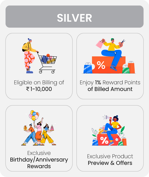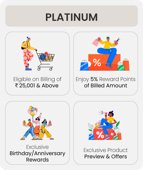 One will directly be registered as a Platinum Member on shopping of 25,001 or above.