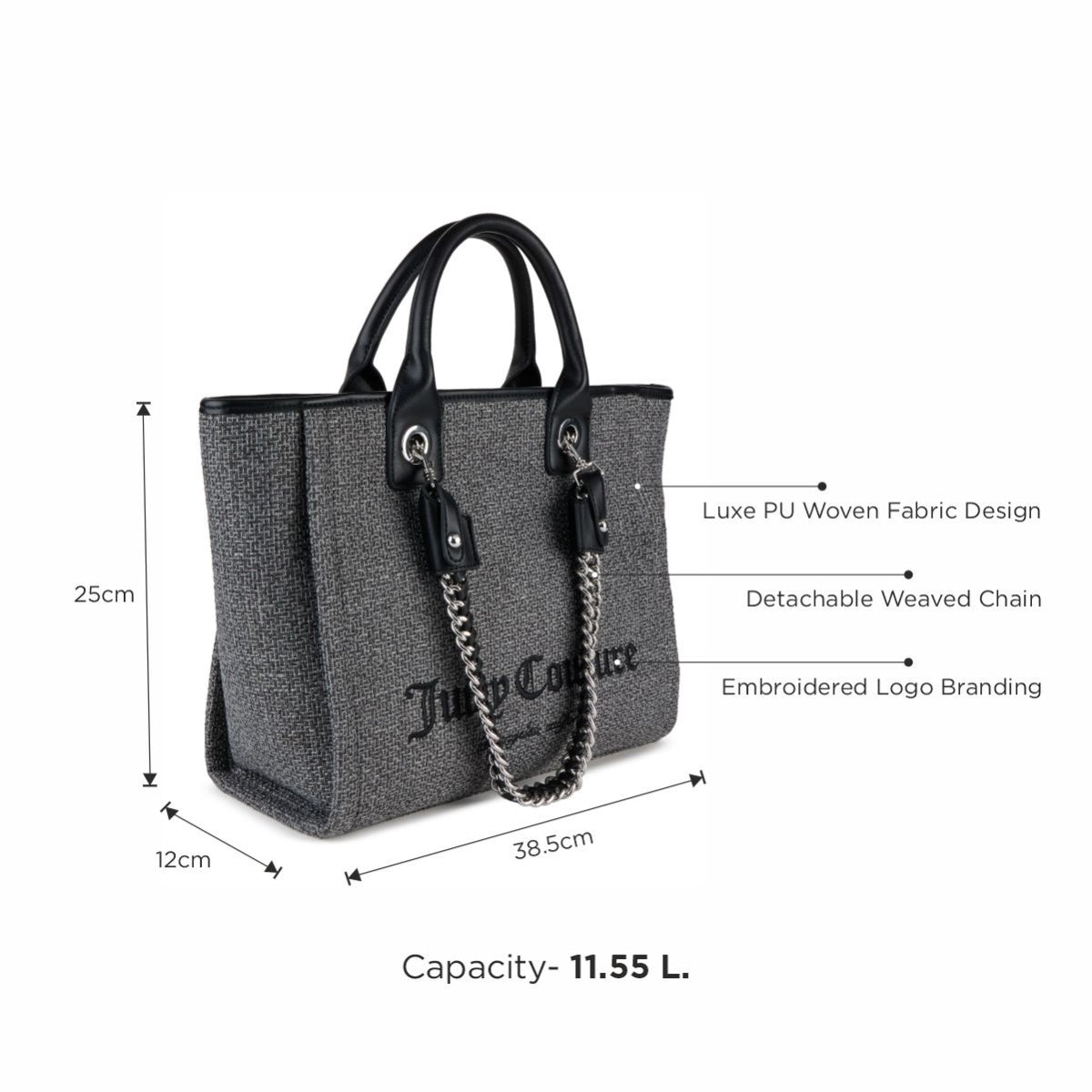 Chic Juicy Couture Style: Elevate your fashion game with the luxe PU woven fabric design, signature logo branding, and sleek solid PU side panels, embodying the essence of Juicy Couture elegance.